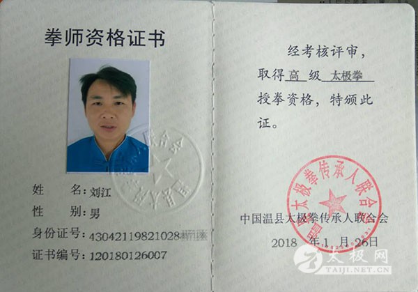 刘江湖南衡阳人,中共党员。习练太极拳,师承陈家沟太极拳传人孟凡为师。 刘江,受父亲在武警部队做教练习武熏陶,自幼喜爱武术,略懂擒拿、格斗术。2014年荣幸认识太极名师孟凡,追随为师。 冬练三九,夏练三伏,在师父的精心教导下,日复一日,年复一年先后学习陈氏太极拳28式、老架一路二路、新架一路二路、太极推手、太极器械春秋大刀等。 梅花香自苦寒来,2015年深圳市太极拳交流大赛,荣获青年组太极拳金奖;器械春秋大刀银奖;并代表区队,获得银奖;2016年参加深圳市珠三角太极拳交流大赛,陈氏太极拳获得8.71分,荣获青年组银奖;器械春秋大刀获得8.68分,荣获银奖;代表区队,获得银奖。2017年3月,正式成为太极名师孟凡入室弟子,在师父调教下,已初步会运用丹田运转。2017年8月通过广东省武术三段。 一份耕耘,一份收获,习武贵在坚持不懈,持之以恒,勤奋练习太极拳,结合自己悟太极阴阳规律和哲理,并运用到工作和生活中,帮助更多的人。路漫漫其修远兮,在今后的习武道路上,不忘初衷,时刻谨记太极拳祖训,弘扬太极精髓,为传播太极拳文化奋斗终生。 |