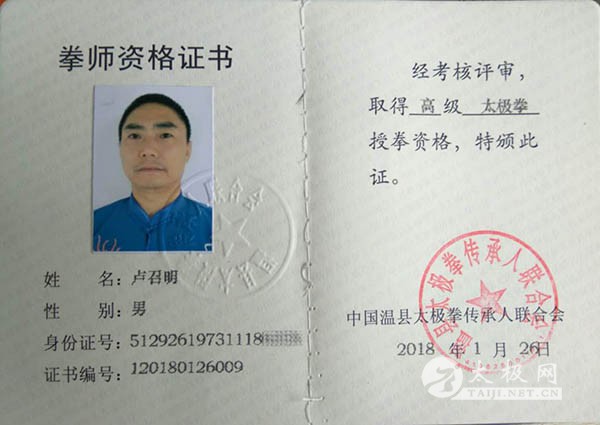 卢召明-1973年生于四川省南充市蓬安县,自幼非常喜欢武术。 2013年于深圳坪山跟随我的恩师孟凡先生系统的学习了陈式太极拳 、陈式太极春秋大刀、 陈式太极单剑及推手 。 2014年获得深圳市传统武术精英赛 、陈式春秋大刀第二名、陈式太极拳金奖 。 2015年获得深圳市太极拳(器械)比赛 陈式春秋大刀集体金奖、个人 金奖、陈式太极拳金奖、同年还获得广东南粤银行《千人舞太极》集体第一名。 我愿意为太极拳推广奋斗,学习太极文化,为发扬和推广太极文化而努力。 |