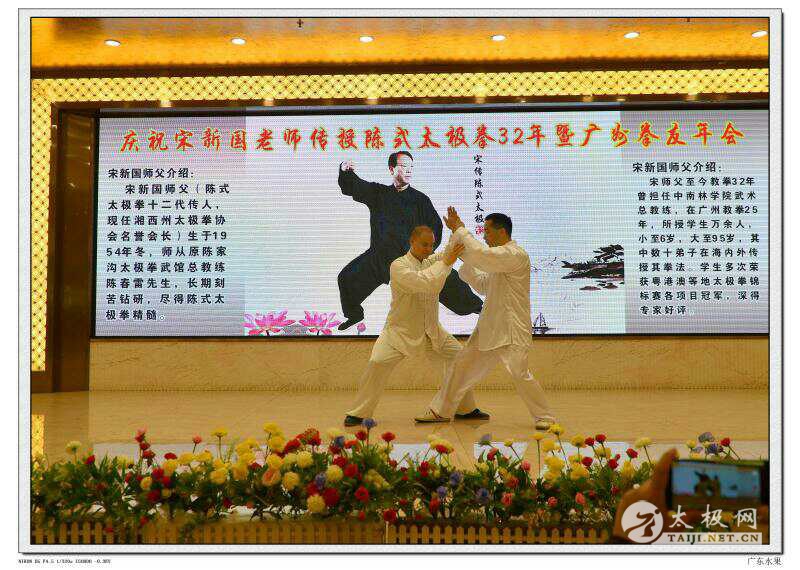 (太极网报道)2018年1月13日,宋新国老师传授陈式太极拳32年暨广州拳友年会,在古色古香的广州花地湾聚龙村广场拉开帷幕。众多跟随宋新国老师习练太极拳的弟子在此相聚,共同感恩宋老师传拳之辛劳,感谢他三十年如一日,风雨无阻,为传播太极拳做出了巨大的贡献。 一大早,迫不及待的拳友们就从各地赶来。据悉,本次年会由余向鸿、韦秋玲等几位同门师兄师姐组织发起,在不到十天的时间就有三百多宋老师的学生报名参加,除了广州本地的太极拳同门,湖南湘西自治州太极拳协会(宋老师老家)的领导和学员代表十几人更是不远千里专程前来赴会。 年会活动分为户外和室内两大部分,户外是集体表演项目,首先集体演练了陈拳老架一路,现场二三百人同台演练,虽然事先没有经过彩排,但大家的动作还是整齐划一,将陈式太极拳的舒展大方,松圆沉稳,柔中带刚的特点演绎得淋漓尽致,场面壮观,十分惊艳和震撼! 随后宋老师各个教学点的代表队依次出场,表演的节目精彩纷呈,既有刚猛威武的老架二路(广州黄埔公园队),也有招数华丽的太极剑(广州体育馆队),还有各有特点的老架一路精选(广州流花湖一、二队,光大队),而全部由金牌获得者表演的宋老师自编“三路”(越秀山队),更是气势如虹,颇见功底!压轴亮相的是湖南湘西自治州太极拳协会代表队,他们表演的宋老师自编26式曾作为湘西州武术锦标赛开幕式的表演节目,他们的表演专业、恢弘大气,现场掌声如雷。 一个多小时的集体表演在意犹未尽中告一段落,大合照之后,活动转场到东海湾酒家,在酒家高大上的舞台上,宋老师和湘西州教体局的领导先后发表了热情洋溢的讲话,老师讲话后现场所有人集中举杯向他敬酒,大家包含深情,齐声祝福,更是将气氛推向了高潮! 特地从美国赶回来参加年会的黄惠雄大师兄表演的老架二路,年近七旬的陈南国师兄表演的岳家棍,刘松发师兄表演的简化一路,黄品霖、温绍平表演的推手,刚柔并济、秀外慧中、功力深厚,精彩的表演让同门的太极发烧友看得如痴如醉,回味无穷。其他表演者虽然有不少人学习太极的时间不长,但也都打得有模有样,架势十足,赢得喝彩不断。 特别值得一提的是,这次年会很多外地的同门无法赶回,他(她)们为了参与互动,表达自己的心意,不少人发来了祝福短视频,年会现场大屏幕上播出以后,仿佛连线到了美国、加拿大和国内的福建、浙江、湖北等地,场面温馨感人,凸显了年会“宋传太极一家亲”的主题。 年会让人感动的场景还有挺多:刘文锋、郭斐、秦玉娟、韦秋玲等师兄师姐赞助了价值3万多元的红酒和各种抽奖物品;陈南国师兄更是将自己珍藏多年的一批亲笔画作捐给大会拍卖和义卖,现场募集到数千元善款作为年会的补贴用途……有了他们的爱心赞助,以及工作人员的精心准备,现场进行的拍卖和抽奖,一次次将年会的气氛推向高潮! 相聚是短暂的,留下的记忆却是永久的,短暂的相聚让我们的心贴得更近了!爱和付出让我们更加紧密地凝聚在一起,感恩老师,感恩太极,健康无价,友谊无价,宋传太极一家亲!我们有幸身处这个伟大的时代,我们为祖国的崛起而骄傲,为以太极为代表的传统文化而深感自信!让我们珍惜缘分,彼此友爱,勤练太极,不仅给自己带来健康,也为太极文化的发扬光大尽一份力量,共创美好的明天! 责任编辑:太极网小明 |