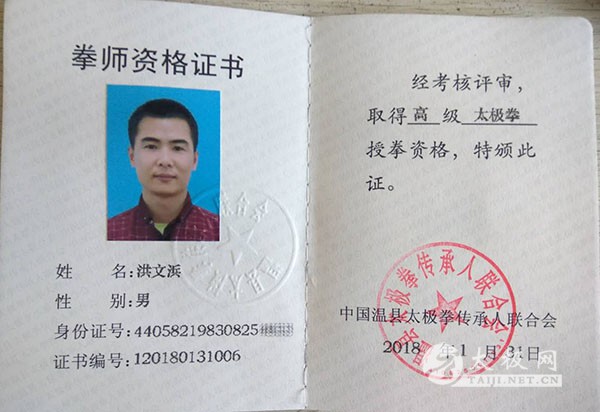 洪文浜2003年开始学习杨式太极拳,2015年跟方东升老师学习陈式太极拳,2017年拜方东升为入门弟子。2010年至2017年先后在深圳宝安九区、灵芝园工作站、特辰公司、传授太极拳。
