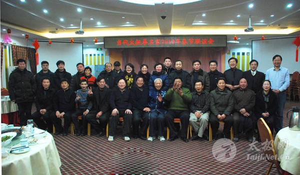 带着新年的喜悦心情,大家推杯换盏,畅谈太极拳的未来发展。和式太极拳代表人物和有禄说,不管是陈式还是和式,都起源于温县,都是温县的太极拳,得到大家的一致掌声。郑悟清拳法传人王根念说,他是首次参加各流派参加的集体聚会,感到非常高兴,希望将来多举办这样的活的,促进各流派之间的和谐发展。