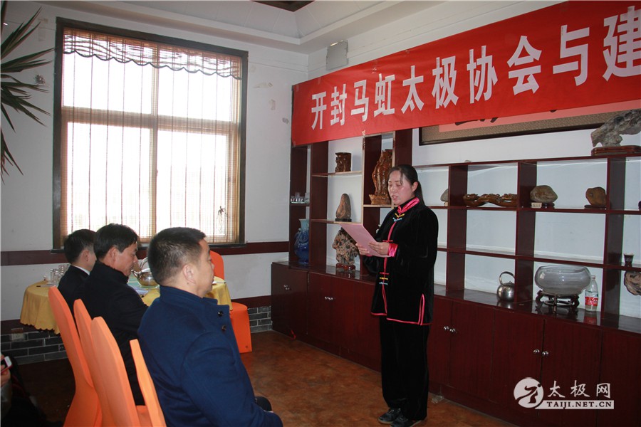 (太极网报道)2018年2月4日,开封陈式太极拳马虹拳法研究会年会于立春之期举行,会长马丙勤与研究会成员欢聚一堂,共话太极,共度新春。参加本次年会的还有来自中国建设银行开封市东部新城支行行长梁晓磊等嘉宾。 活动现场 开封陈式太极拳马虹拳法研究会会长马丙勤新年致辞