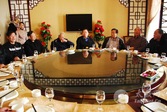 座谈会上,赵公佩会长转达了焦作市市委、市政府领导对太极拳界朋友的春节问候,总结了在各级领导的重视和支持下,过去一年焦作市太极拳的工作。一致认为,2009年,焦作市和温县加大对太极拳开发的力度,面积1000亩的焦作市国际太极拳培训中心的规划立项、投资11.9亿的陈家沟太极拳景点的建设的动工,都标志着太极拳发源地大手笔发展太极拳事业的开始。2008北京奥运会后,太极拳为主要内容的全民健身活动在全国得到了更加广泛的发展,各式太极拳段位教材的审定与推广,加快了中小学太极拳普及的步伐,随着广大群众日益增高的养生健身欲望,太极拳普及发展的需求面和推动力都出现了空前的好势头,做强做好太极拳这篇造福人类的大文章,是当代每一个太极拳工作者的肩负的重任。