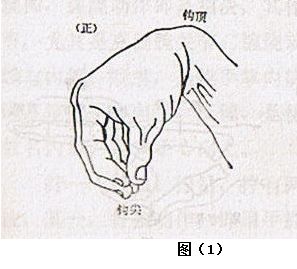 说到太极拳的“钩手” (勾手),也许有人会说:钩手谁不会,还用你说?不就是五指尖撮拢在一起,腕关节顺屈自然下垂而成“钩手”吗。 此话不错,这是我们所看到的(包括许多太极拳书籍)大多数太极拳者在演练太极拳时所展示的“钩手”,也是拳术中最普遍的钩手(见图1)。