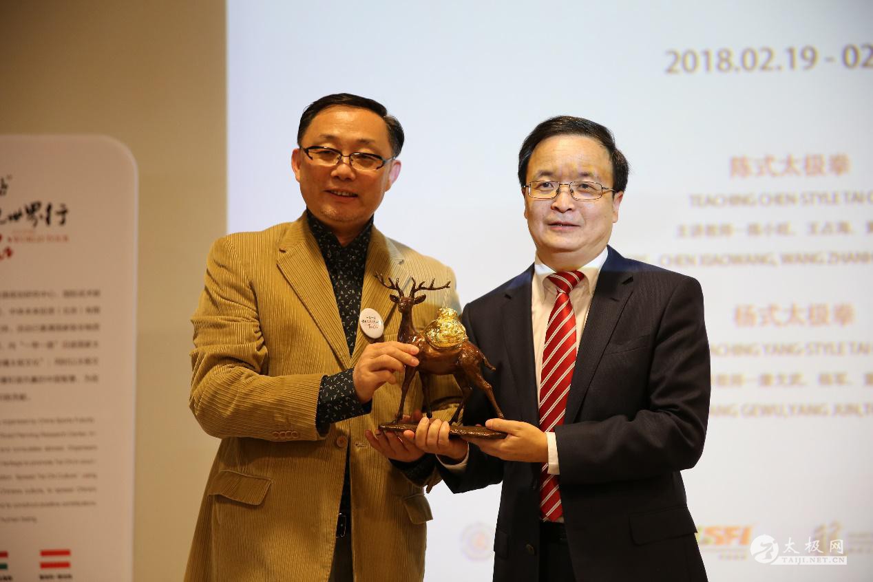 (太极网讯)德国时间2月19日,“一带一路”中国太极文化世界行公益活动柏林站在柏林中国文化中心正式开幕。柏林中国文化中心主任陈建阳和主办方中体未来董事长王健光分别致辞感谢大家对“一带一路”中国太极文化世界行公益活动的支持及肯定。 很多德国甚至来自其它欧洲国家学员们得知活动后专程赶来现场,活动报名人数远远超过场地最大容载量,导致很多学员无法参加课程,即使这样,现场仍有很多慕名而来的太极爱好者赶来一睹太极讲师们的风采。 柏林站开幕式后合影 中体未来董事长王健光向柏林中国文化中心主任陈建阳赠送礼品 开幕式现场由本次世界行太极讲师中国国家武术研究院研究员康戈武先生向大家介绍了本次太极讲师团的组成:国家级非物质文化遗产项目陈式太极拳传承人陈小旺先生、国家级非物质文化遗产项目陈式太极拳传承人王西安之长子,太极禅技术总监兼功守道总教练王占海先生、国际杨式太极拳协会主席杨军先生、全国太极拳锦标赛冠军童红云女士、国家武术段位制优秀指导员考评员黄鑫先生一一亮相并作为讲解员亲自向太极爱好者传授太极拳功法及理论。 陈式段位制太极拳讲授现场 杨式段位制太极拳讲授现场 太极拳讲授现场 陈式讲师向学员们讲授太极拳对练招式 杨式讲师向学员们讲授太极拳对练招式 太极拳讲师团于德国柏林采风 陈小旺及王占海讲师在德国柏林采风对练 “一带一路”中国太极文化世界行公益活动由丝路规划研究中心、国际武术联合会作为指导单位,云极(北京)文化有限公司、中体未来投资(北京)有限公司共同发起举办,中国驻外使领馆给予大力支持。活动邀请国家级非物质文化遗产太极项目代表性传承人组成宗师执教团,向“一带一路”沿途国家太极爱好者传授中国太极文化。“一带一路”中国太极文化世界行将于2018年2月18日至2018年3月1日在德国柏林、意大利威尼斯、奥地利维也纳、匈牙利布达佩斯进行太极拳及太极文化授课。 “一带一路”中国太极文化系列活动更是将采取“走出去”与“请进来”相结合的方式,扩大中国民族文化的国际影响力,在2018年年底,组委会将联合深圳市龙岗区政府举办“一带一路”中国太极文化国际周活动,吸引全球太极爱好者,将喜欢中国传统文化的人士齐聚深圳市龙岗区,切身感受中华传统文化的博大精深和太极拳的无穷奥妙。此外,“一带一路”中国太极文化世界行还将在此次欧洲行之后开展亚洲行,美洲行等后续活动,旨在向全球推广中国太极文化。 “一带一路”中国太极文化系列活动以“弘扬中华文明,传播太极文化”为目标,太极文化为载体,“一带一路”为国际平台和渠道,向海外更大限度的传播中国文化软实力,向全世界推广中华传统文化精髓,传播和谐共赢的中国智慧,为促进全球文化协调发展和构建人类命运共同体做出积极贡献。 |
