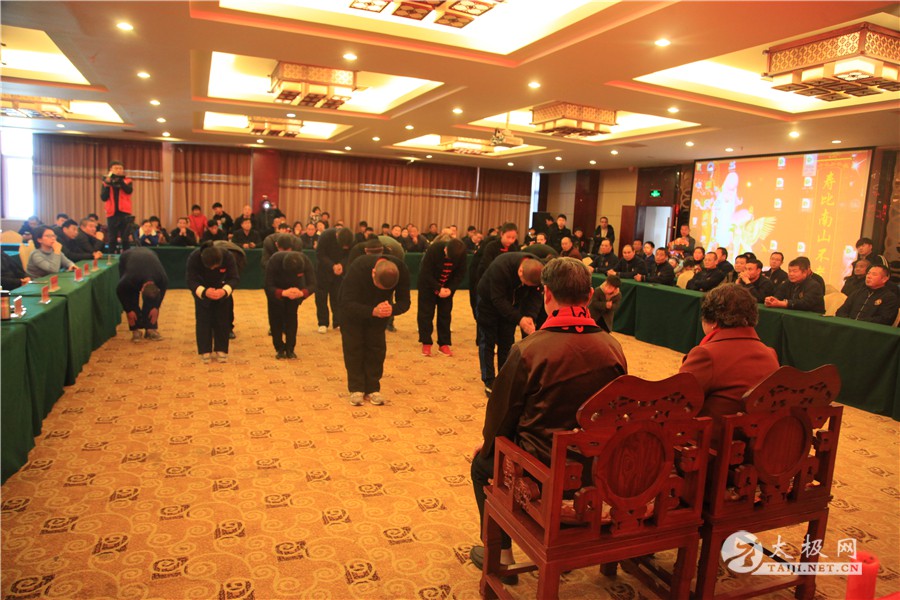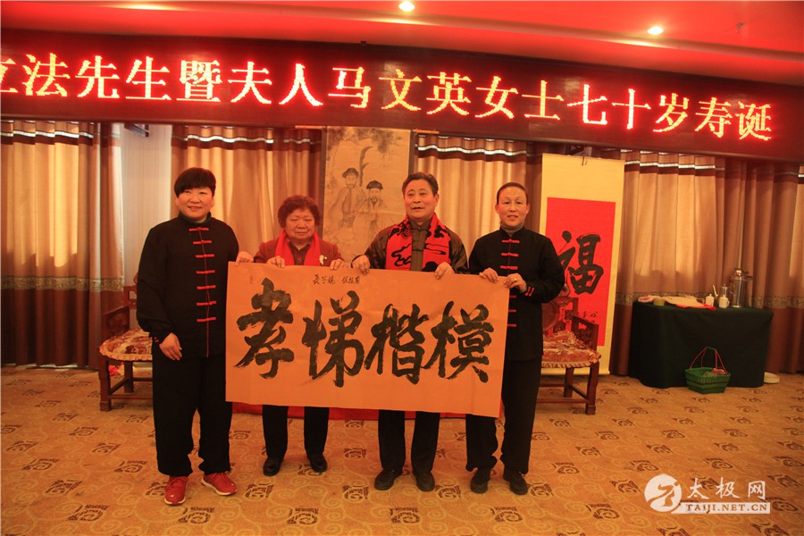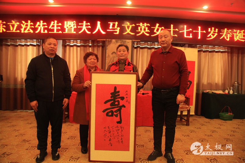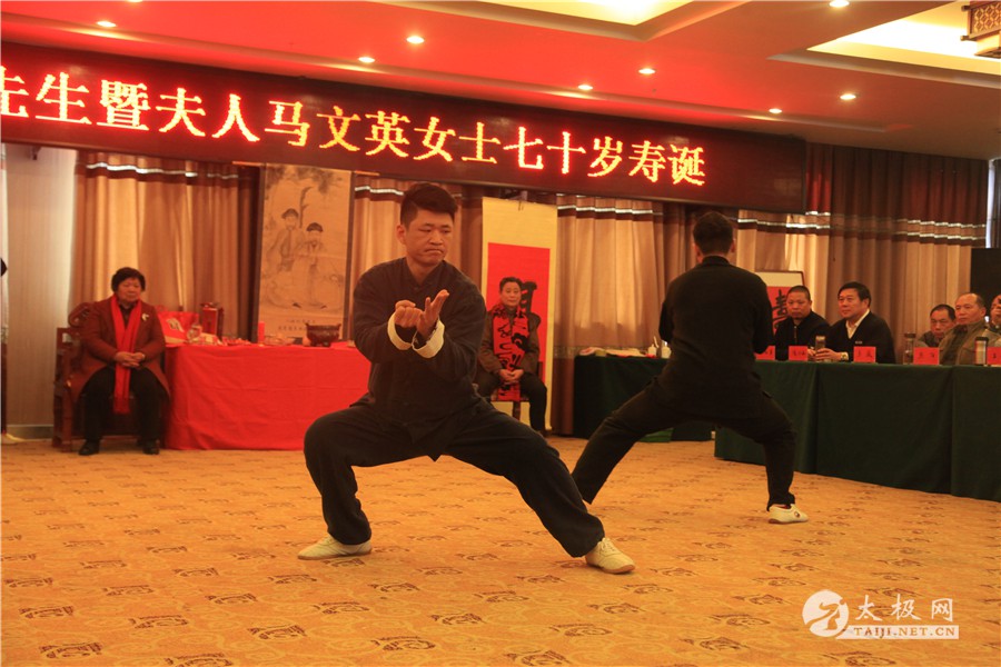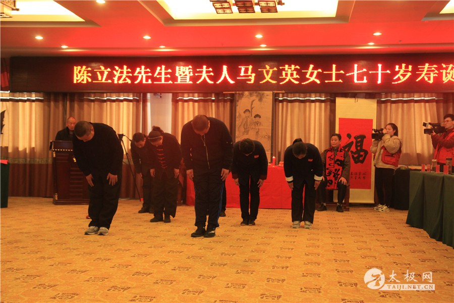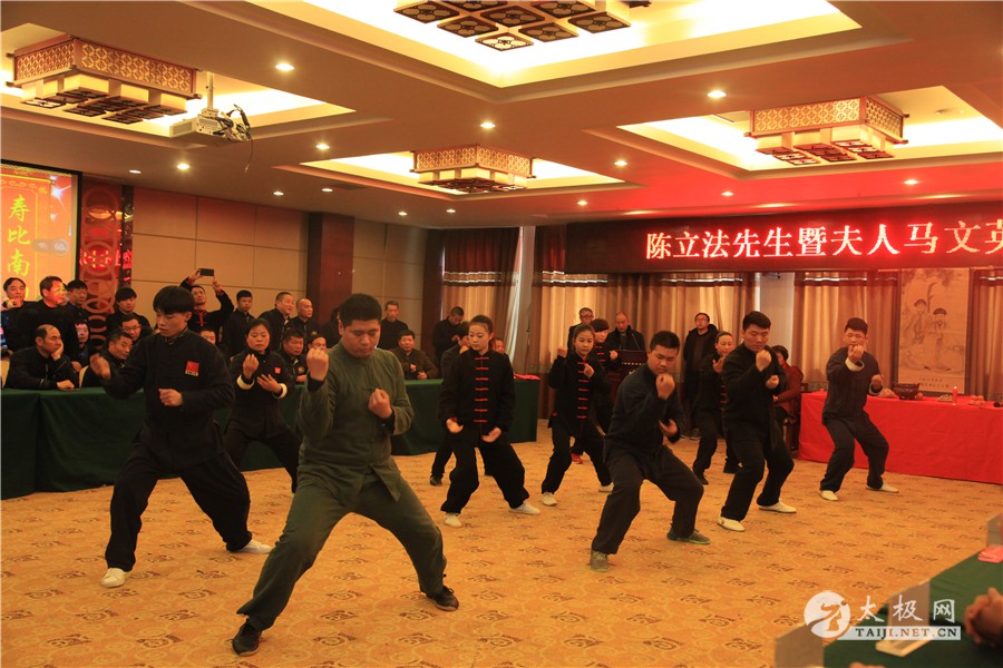 (太极网报道)2018年2月23日,新春佳节的浓厚氛围尚未散去,陈家沟陈氏第十九世、陈氏太极拳第11代传人陈立法及其夫人马文英迎来了七十岁寿诞,众多亲朋好友及陈立法老师的国内外弟子于陈家沟王庭大酒店欢聚一堂,共庆华彩,共话太极。 现场嘉宾 陈石岩主持庆典活动 焦阳介绍嘉宾 陈家沟陈氏家族理事会秘书长陈石岩石主持此次庆典活动,出席活动的领导及嘉宾有温县政协副主席严双军,原三门峡市公安局副局长陈沛林,徐州市技师学院党委书记焦阳,徐州市誉佳土地开发集团董事长王学剑、经理顾兰,辉县市新华书店经理郭树军,温县东方一厂鞋业有限公司董事长马金利,温县洪鑫塑料制品厂王红军,陈家沟陈氏家族理事会理事长、陈家沟历史文化研究会主任陈一华,牛明田先生及牛佳女士等。 活动现场 焦作市陈氏太极拳小架研究会会长秦巍带领沁阳陈立宪太极拳传人20余人参加庆典,陈立法太极拳社重庆分社、法国分社、徐州分社、义马分社、三门峡分社、安徽太和分社、山东烟台分社、陕西潼关分社、郑州分社、沁阳分社及北京万坤拳社等近百余名陈立法太极拳传人纷纷赶到活动现场共同为师父、师母恭贺寿辰。 严双军致辞 活动开始前,与会众人集体向太极拳始祖及历代宗师鞠躬行礼,感念前辈创拳授艺之辛劳,缅怀先师为太极拳事业呕心沥血、鞠躬尽瘁的不朽功绩。严双军发表讲话,他首先祝贺陈立法老师及夫人七十岁生日快乐,并且充分肯定了陈立法老师为太极拳的传播和推广做出的突出贡献,并向其数十年如一日为太极拳事业的发展以及太极拳传承付出的辛苦努力表示感谢,并预祝庆典活动取得圆满成功。 陈永昌代表致祝寿词 高銮致祝寿词 陈立法老师长孙陈永昌代表子女亲属致祝寿词,高銮作为弟子代表致祝寿词。随后,陈立法老师依照传统礼仪祭拜先祖,上香、敬酒、行叩拜大礼。现场还播放了介绍陈立法老师法国弟子马蒂尔学拳经历的VCR《大道太极》,焦阳书记做旁白介绍。 陈立法携夫人马文英敬香行礼 亲属拜寿 弟子拜寿 拜寿仪式开始,陈立法老师子女家属列队行叩拜大礼,祝寿星福如东海、寿比南山,祝陈氏家业更加兴旺。随后,陈立法老师弟子列队行叩拜大礼,祝师父师母身体健康、万事如意,祝太极拳事业更加辉煌。 陈立法老师讲话 陈立法老师发表讲话,他首先对出席今天活动的诸位领导及嘉宾表示欢迎,并对他们的祝福表示衷心的感谢,同时他也向自己的子女亲属和弟子们表示感谢,他还表示,自己今后还将继续致力于太极拳的推广和传播,为弘扬太极文化以及推动太极拳事业发展奋斗终生。 现场赠送拜寿书法作品 陈国太致答谢辞 全体家属向到场嘉宾行礼 现场表演 陈立法老师长子陈国太代表全体家属致答谢辞,众子女亲属集体向到场嘉宾鞠躬行礼。随后,活动现场还进行了精彩的太极拳表演,各参演人员的精彩技艺引发现场雷鸣般的掌声,同时也为本次庆典活动画上了一个圆满的句号。 合影留念 责任编辑:太极网陈超 |
