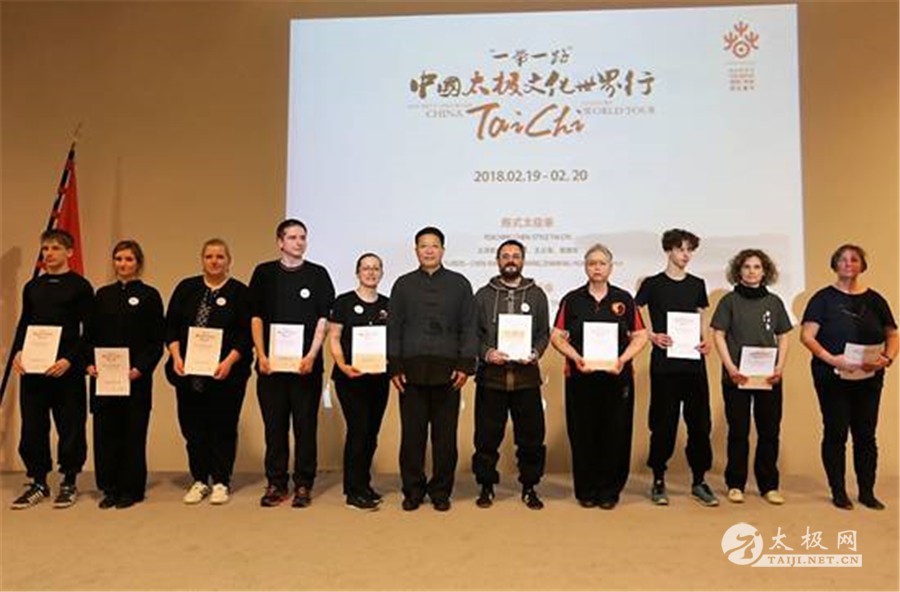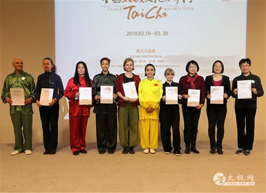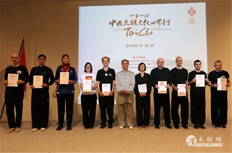 (太极网报道)德国时间2月20日,“一带一路”中国太极文化世界行公益活动柏林站在柏林中国文化中心圆满落幕,太极拳讲师向学员们颁发结业证书,同日晚上太极拳讲师执教团受邀参加“礼赞春辉,温暖中华”中国艺术家代表团春节慰问行欧洲行(柏林站)公益晚会。 本次活动吸引了很多德国甚至来自其它欧洲国家学员们参加,有很多慕名而来的太极爱好者赶来一睹太极讲师们的风采,活动报名人数远远超过预期。 在20日上午,柏林站进行了太极文化与太极拳理论课,学员教学测试及汇演等环节。中国国家武术研究院研究员康戈武先生向在场学员讲述太极文化及太极拳的渊源和发展及其时代价值,国家非物质文化遗产项目陈式太极拳代表性传承人陈小旺先生、陈式太极拳代表性传承人王占海先生、国际杨式太极拳协会主席杨军先生、全国太极拳锦标赛冠军童红云女士、国家武术段位制优秀指导员考评员黄鑫先生亲自解答了学员们的问题和疑惑。 讲师解惑环节 现场学员向讲师提问 陈小旺以现场纠正动作的方式解答学员的疑惑 王占海讲师回答学员疑惑 当学员提问王占海讲师:传统太极拳好还是段位制太极拳好?王占海讲师如下回答到:段位太极拳是以传统太极拳为基础,保持了传统太极拳的文化、技艺和健身养生功能等要素,按照简单易学、标准统一、可复制推广的要求编定,有助于太极拳大众化、国际化推广。 杨军示范表演杨式太极拳 童红云,黄鑫示范表演杨式太极三段对打拳 学员练习太极拳 太极文化深受国外人民喜爱,外国母亲带婴儿前来学习太极拳 课程结束后,讲师们向学员颁发了结业证书,“一带一路”中国太极文化世界行活动柏林站圆满结束。 陈小旺讲师向学员颁发结业证书 王占海讲师向学员颁发结业证书 杨军讲师向学员颁发结业证书 童红云讲师向学员颁发结业证书 黄鑫讲师向学员颁发结业证书 柏林中国文化中心主任陈建阳向学员颁发结业证书 当天晚上,“一带一路”中国太极文化世界行公益活动太极拳讲师执教团受中国驻德大使馆邀请,参加“礼赞春辉,温暖中华”中国艺术家代表团春节慰问欧洲行(柏林站)公益晚会,在晚会上表演太极拳,同海外华人华侨慰问互动,受到了热情的欢迎和赞誉。 太极拳讲师执教团 王占海、杨军讲师表演太极拳 童红云、黄鑫讲师太极拳对练表演 陈小旺讲师表演太极拳 “礼赞春辉,温暖中华” 春节慰问欧洲行中国艺术家代表团与太极拳讲师执教团合影 太极拳讲师执教团和中国驻德大使史明德合影 “一带一路”中国太极文化世界行公益活动由丝路规划研究中心、国际武术联合会作为指导单位,云极(北京)文化有限公司、中体未来投资(北京)有限公司共同发起举办,中国驻外使领馆给予大力支持。活动邀请国家级非物质文化遗产太极项目代表性传承人组成太极拳讲师执教团,向“一带一路”沿途国家太极爱好者传授中国太极文化。“一带一路”中国太极文化世界行将于2018年2月18日至2018年3月1日在德国柏林、意大利威尼斯、奥地利维也纳、匈牙利布达佩斯进行太极拳及太极文化授课。 “一带一路”中国太极文化系列活动更是将采取“走出去”与“请进来”相结合的方式,扩大中国民族文化的国际影响力,在2018年年底,组委会将联合深圳市龙岗区政府举办“一带一路”中国太极文化国际周活动,吸引全球太极爱好者,将喜欢中国传统文化的人士齐聚深圳市龙岗区,切身感受中华传统文化的博大精深和太极拳的无穷奥妙。此外,“一带一路”中国太极文化世界行还将在此次欧洲行之后开展亚洲行,美洲行等后续活动,旨在向全球推广中国太极文化。 “一带一路”中国太极文化系列活动以“弘扬中华文明,传播太极文化”为目标,太极文化为载体,“一带一路”为国际平台和渠道,向海外更大限度的传播中国文化软实力,向全世界推广中华传统文化精髓,传播和谐共赢的中国智慧,为促进全球文化协调发展和构建人类命运共同体做出积极贡献。 本站编辑:太极网陈超 |
