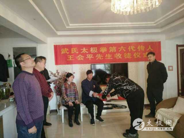 (太极网报道)2018年2月22日(正月初七),武氏太极拳第六代传人王会平先生在邯郸市一中家属院举行收徒仪式。 正月初六,王会平先生率领两位弟子先到武禹襄祖师故居进行了拜祖仪式及太极拳和推手培训。正式收徒拜师仪式简洁庄重,由邯郸市一中的牛主任主持宣布拜师仪式正式开始、并介绍来宾与宣读王会平曾习武教学的经历;王会平毕业于河北师范大学体育系武术专业。现任邯郸市第一中学优秀体育教师,工作敬业、慎重,学习认真,练功刻苦,做事雷厉风行、一丝不苟。他是1999年在邯郸市峰峰矿区任十四中学体育教师时,机缘认识了武氏太极拳第五代直系传人孙建国先生,“双雄演绎、功夫切磋”,经过长时间的交流探讨王会平先生在1999年7月份拜在了孙建国老师门下,在孙建国师父的指点下王会平先生经过学习创新十九年,刻苦深入研练武氏太极拳的真谛,他继承和发扬了老前辈们的文化遗产和祖训。 19年时间对武氏太极拳的深理追求及研炼,终于在2018年正月初七“开山”收徒。经过他的慎重考虑和挑选,喜收两位爱徒,分别是沈阳体育学院研究生吕源龙、西北农林科技大学研究生王钊,两位各自郑重宣读了拜师贴,坚决遵守武氏太极的门派门规,永不背叛师门,一日为师,终生为父,并向师母陈旭敏敬献了爱心茶与改口茶。师父师母现场表示一定要把学生和徒弟教好,把文化与武术课上好,培养出更多优秀的多才多艺大学生,为祖国文化传承尽心尽力!陈旭敏师母支持师父王会平搞好体育事业,发展太极养生全民健身运动,师父王会平回赠了门规和2014年第11期封面人物《武魂》杂志签名书刊。 王小鹏师叔宣读门规,师公孙建国致辞表示,弟子们当谨记遵从本门十六字箴言,技艺苦练,武德当先,衣钵相传,宁少勿滥!武氏太极拳历代祖师都是文人拳,文化拳,文雅拳,文明拳。继承与发扬中华民族优秀传统文化,希望武氏太极文化能在各地大学校园里发扬光大!使邯郸市永年区武氏太极学院、邯郸市一中、邯郸学院、西安某大学友谊结合起来,共同实现国学正能量。在校园发挥自身优势,实现少年强则中国强,实现民族复兴的中国梦! 责任编辑:太极网小明 |