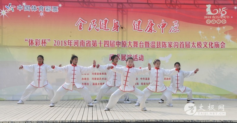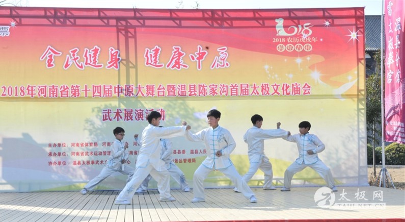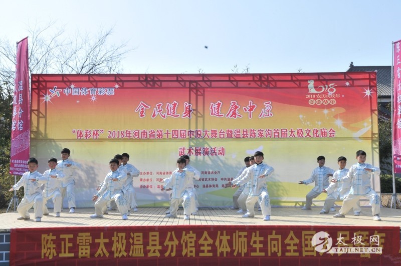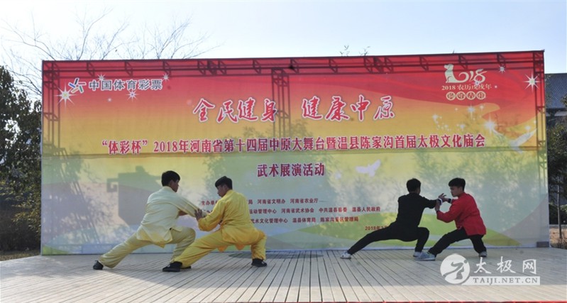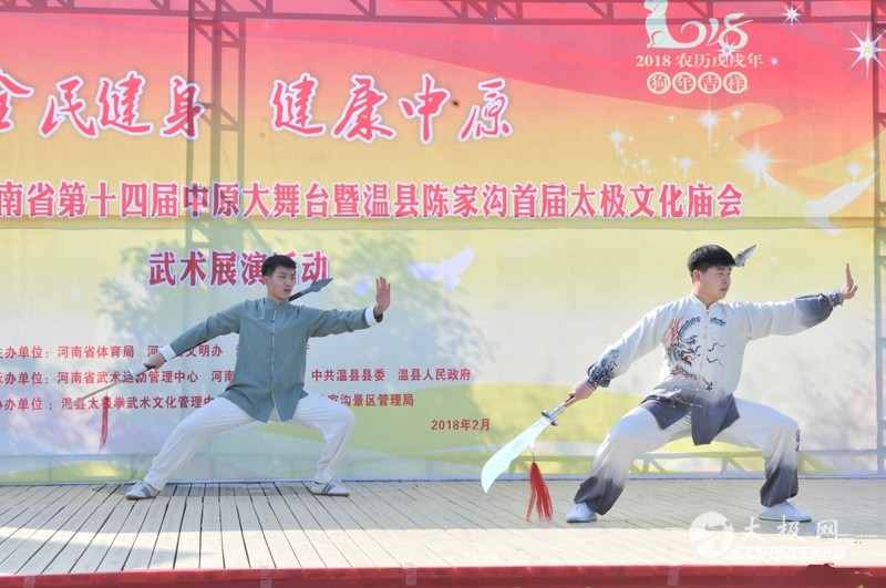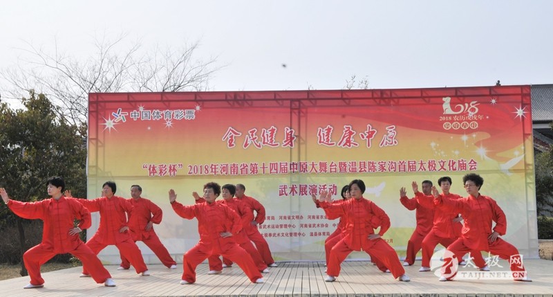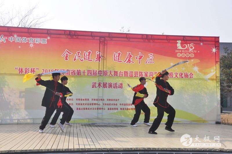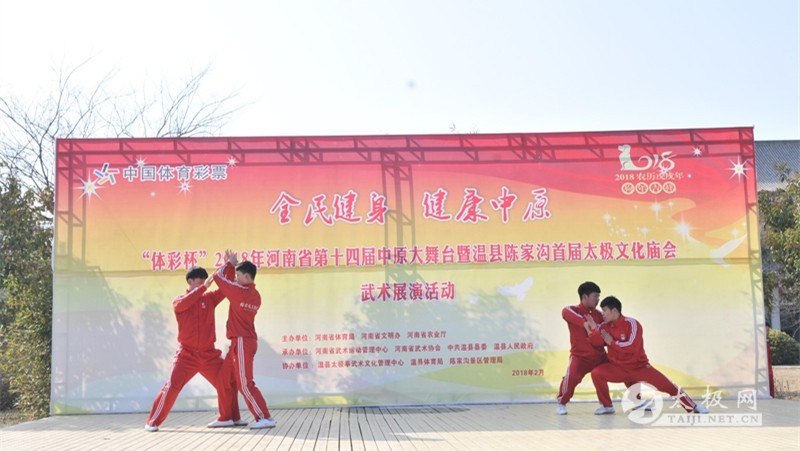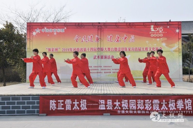 (太极网报道)全民健身,健康中原——“体彩杯”2018年河南省第十四届中原大舞台暨温县陈家沟首届太极文化庙会武术展演活动于2018年2月21日(农历正月初六)至3月3日(农历正月十六)在陈家沟景区祖祠演艺场隆重举行。 活动持续期间来自温县武校的多支传统武术团队轮番上阵,每天下午3:00—5:00,持续了11天。为广大来宾展现了博大精深和独特魅力的一场太极拳盛宴。中原大舞台武术展演系列活动从正月初六至今日,已有陈家沟国际太极院、张保忠太极武院、陈家沟太极拳功夫学校、有刚太极武校、郑彩霞太极拳馆、陈正雷拳馆温县分馆等武校相继上演了一场场精彩纷呈的武术展演和文化展示。包括集体表演、太极拳套路、器械、推手、观众互动等。 |