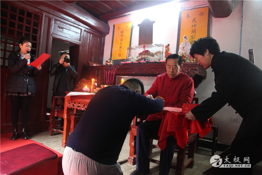 (太极网报道)2018年3月3日,国家级非物质文化遗产项目陈式太极拳代表性传承人、国际太极拳大师王西安大师收徒仪式于陈家沟王西安老师老宅中隆重举行。在焦作市武协副主席、王西安拳法研究会会长阎素杰女士的见证下新入门弟子任根成、邓崇光、王琦拜入王西安大师门下,成为正式的入门弟子。 现场嘉宾 出席今天收徒仪式的领导及嘉宾有:温县政协副主席严双军,温县县委宣传部副部长、温县太极拳武术文化管理中心主任宋明军,温县太极拳武术文化管理中心副主任范小涛,温县体育局副局长任海林,赵堡镇党委书记王世谦,原温县武术馆馆长黄宝金,天目瓷董事长柯军利等。 收徒仪式主持人魏满娇 王西安大师的弟子们也悉数前来,祝贺师父再添新徒,他们分别是陈家沟王战军太极拳学校校长王战军,陈家沟功夫馆馆长张福旺,张保忠太极武院院长张保忠,温县太极武术馆馆长陈二虎,陈家沟陈三虎太极文武学院院长陈三虎,以及冉永庆、马骉等众多太极名家。 王西安大师敬香 收徒仪式 拜师仪式开始前,王西安大师净手上香,双手合十虔诚祭拜武神关公和太极拳宗师陈照丕,随后新入门弟子依次上前净手行礼,以示太极拳代代相承,薪火不断。随后,新入门弟子跪读敬表文,并虔诚地向师父递拜师帖,敬拜师茶。王西安大师为弟子一一披弟子服,颁发传承书。之后,在王西安拳法研究会会长阎素杰女士的见证下,王战军老师带领入门弟子宣誓、共同向王西安大师行跪拜礼。陈二虎老师代表入室弟子发言对新入门师兄弟表示欢迎,并表示将不忘初心谨记师训传播太极。 王西安大师训话 阎素杰讲话 王战军带领众师兄弟宣誓 新入门弟子发言 陈二虎代表众弟子讲话 范小涛讲话 范小涛在讲话中向王西安大师表示祝贺,并对他一直以来为太极拳事业的发展和太极文化的传播所作出的贡献表示感谢,同时希望新入门的三位弟子认真习练太极拳、用心体悟太极文化,早日成长成为太极拳传播和推广的中流砥柱,为太极拳事业的发展增光添彩。 新入门弟子与师父及到场嘉宾合影 拜师仪式至此圆满礼成,王西安大师再添新徒,为太极拳的推广和传播注入了新鲜的血液,为太极拳事业的蓬勃发展提供了强大的助力。 责任编辑:太极网陈超 |