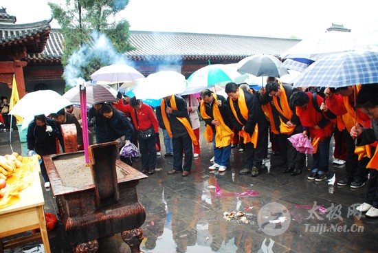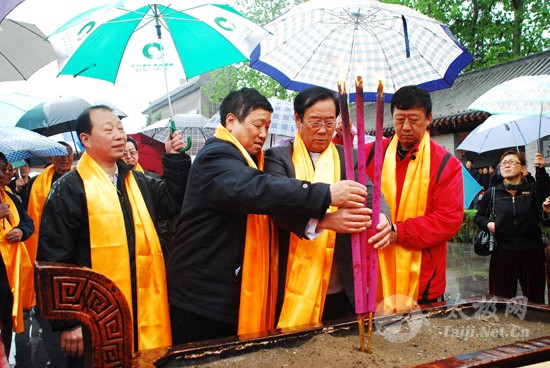 4月21日,焦作市陈式太极拳协会在太极拳发源地陈家沟举行寻根问祖活动。 上午十点整,来自焦作市的300余名太极拳爱好者为表达对青海玉树地震遇难同胞的深切哀悼,首先进行默哀仪式。之后,国际太极拳大师王西安代表太极拳爱好者向太极拳始祖敬香,焦作市陈式太极拳协会会长阎文胜朗读祭文。陈家沟景区管理局局长职毅、王西安拳法研究会会长阎素杰、陈家沟老村长张蔚珍等应邀参加了拜祖活动,活动由焦作市陈式太极拳协会副会长原福全主持。 拜祖仪式过后大家相继参观了杨露禅学拳处和中国太极拳博物馆。