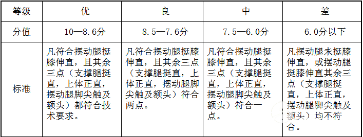 各武术馆校、社团及相关单位: 为弘扬太极文化,传承太极精髓,打造享誉世界的太极圣地,进一步促进各武术馆校及社团之间交流,发现武术人才和为省锦标赛、全国太极拳公开赛锻练队伍,定于4月13日—15日,在陈家沟太极拳国际交流中心举办2018年温县第二十三届太极拳、械锦标赛。望各单位积极准备,届时参加。 附件: 1、温县第二十三届太极拳、械锦标赛规程 2、传统武术基本功动作要领及要求 3、温县第二十三届太极拳、械锦标赛报名 温县体育局 温县太极拳武术文化管理中心 2018年3月13日 温县第二十三届太极拳、械锦标赛规程 一、比赛时间和地点 (一)时间:2018年4月13日—4月15日 (二)地点:温县陈家沟太极拳国际交流中心 二、参加单位 各武术馆校、社团、有关中学及个人 三、比赛项目 (一)太极拳、械系列 1、太极拳、械传统套路 (1)各式太极拳:陈式、杨式、武式、孙式、吴式、和式、忽雷架任选一项; (2)短器械:传统刀术、剑术套路任选一项; (3)长器械:传统枪术、棍术、春秋大刀任选一项。(儿童组限报) 2、太极拳、剑竞赛套路:陈式、杨式、武式、孙式、吴式、42式太极拳、42式太极剑任选一项; 3、太极推手对练套路:省武术管理中心审定的太极拳推手对练套路; 4、集体项目:每队限报一项,拳、械内容不限,必须配乐。(自备CD音乐盘,不带歌词) 四、套路年龄分组 (1)儿童组:12岁以下(2006年1月1日以后出生) (2)少年组:15岁以下(2003年1月1日以后出生) (3)青年组:22岁以下(1996年1月1日以后出生) (4)成年组:22岁以上 (5)集体项目年龄不分组 五、参加办法 (一)每单位可派领队1人,教练1-2人,医生1-2人,运动员28人,男女不限。 (二)每位运动员限报拳术、器械各一项 (三)拳术、器械每一单项不足5人时,均编入相邻组别。 六、竞赛办法 (一)本次比赛为个人比赛。 (二)本次比赛采用国家体育总局武术运动管理中心最新版审定的《传统武术套路竞赛办法》。 (三)太极拳、械系列 1、太极拳、械传统套路必须是以最具传统风格特点的技术动作为基本内容的套路形式,演练中掺杂有太极拳、械竞赛套路内容不予评分。 2、42式和陈式、杨式、武式、孙式、吴式竞赛太极拳、42式太极剑,分别采用原国家体委武术研究院编印的《太极拳竞赛套路》,《四十二式太极拳竞赛套路》,1996年编印的《武式太极拳竞赛套路》和1991年编印的《太极剑竞赛套路》。 3、传统太极拳演练时间4-5分钟(运动员演练至4分钟时,裁判长鸣哨提示),竞赛套路演练时间5-6分钟(运动员演练至5分钟时,裁判长鸣哨提示),传统太极剑和42式太极剑演练时间3-4分钟(运动员演练至3分钟时,裁判长鸣哨提示),其它器械演练时间不少于1分钟。 4、运动员的参赛服装不作规定,但要体现出民族特色、项目特色、运动特色和时代特色。 5、集体项目必须观赏性强,有主题,有创意,具有较高的审美价值;演练时间为4—5分钟,每队可参加至少8人,男女不限,不足8人,每少1人由裁判长扣0.5分。 6、太极拳、械比赛之前测试基本功。太极拳套路测试正踢腿、腾空飞脚、太极器械测试里合、旋风脚。基本功占比赛分值10%,套路占90%。(儿童组只测试正踢腿和里合,成年组不参加基本功测试)。 七、录取名次与奖励 (一)套路 1、儿童组、少年组、青年组各单项男女分别录取前8名;各单项参赛人数不足8人(含8人)时,减一录取; 2、成年组设一、二等奖; 3、集体项目录取前六名(不足六队减一录取); 4、录取比例均按照实际参加人数计算,颁发获奖证书; 5、设“体育道德风尚奖”和“优秀组织奖”各六名(评选办法由大会组委会依据赛事中各代表队集体表现决定)。 八、报名与报到 (一)报名 1、报名:各参赛单位和个人需用A4打印填写报名表一份,并提交运动员身份证或户口复印件、运动员本人1寸免冠照片、责任声明书、人身意外保险单及健康证明,经单位盖章于2018年3月31日前报送县体育局武术科,逾期不予编排。电子版发送至电子信箱:cjgjxs@126.com 联 系 人:万金良 张娚 联系电话:0391-6102544/18939162620 2、凡因本单位(或参赛本人)原因造成的姓名、性别、项目有误,在编好秩序册后不予更改,并取消比赛资格,望各单位认真填写报名表,审核无误后再报送。 (二)报到 1、太极拳、械系列 (1)裁判员于2018年4月12日早8点到体育局报到,各代表队领队于2018年4月12日下午3:00在体育局会议室召开领队教练联席会议; (2)各参赛队于2018年4月13日早7:30到陈家沟太极拳国际交流中心参加开幕式和比赛。 九、各队交通费、食宿费自理; 十、其它 (一)裁判员的选派另行通知。 (二)未尽事宜,另行通知。 附2 传统武术基本功动作要领及要求 1、正踢腿:支撑腿伸直,全脚着地。踢起腿膝部挺直,脚尖勾起前踢,接近前额,动作要轻快有力,上身保持正直。扣分点:两臂前后或上下晃动;踢起腿或支撑腿弯曲;踢起腿脚尖远离前额或腰背明显弯曲。 (1)测试方法:身体正直,挺胸、收腹、立腰。踢腿时,摆动腿挺膝伸直,脚尖勾起绷落。收髋猛收腹,踢腿过腰后加速,要有寸劲。 (2)评分标准:考评员参照正踢腿评分表,独立对考生的技术完成情况进行评定。按10分制打分,所打分数至多可到小数点后两位。 正踢腿评分表 2、里合腿:支撑腿自然伸直,全脚着地。另一腿从体侧踢起经面前向里作扇面摆动落下。其他同正踢腿。扣分点:两臂前后或上下晃动;踢起腿或支撑腿弯曲;踢起腿里合