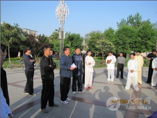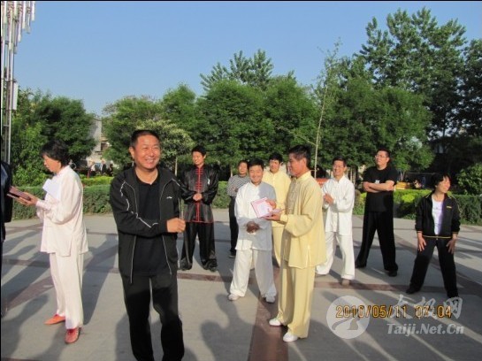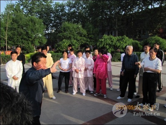 2010年5月1日,正阳县文化广场太极拳辅导站正式组建。这标志着正阳县群众性的太极拳活动进入了规范化开展阶段。 辅导站的站长、助教与教练 会长王大春在向学员讲拳 会长王大春带领学员练拳 [page]