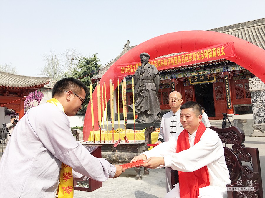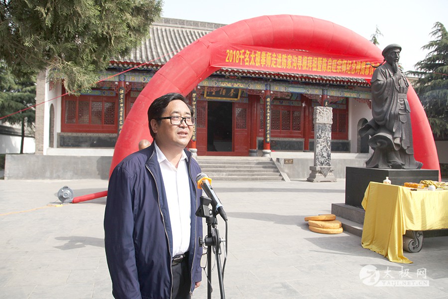 (太极网报道)2018年4月1日,清明前夕,太极拳发源地温县陈家沟太极拳祖祠一片肃穆庄重。2018陈启旺宗师传人陈家沟寻根拜祖暨陈启旺宗师纪念碑揭幕仪式历经数月的筹备于今日正式举行。陈启旺宗师弟子及再传弟子五百余人走进太极拳发源地温县陈家沟,溯源太极之根,拜谒太极祖师,感念先师恩德。 出席本次活动的领导及嘉宾有: 中国作家协会会员 焦作市民协太极拳研究专业委员会主任 严双军 河南省武术协会副主席 耿军 三门峡市公安局原副局长 温县太极拳研究院院长 陈沛林 温县武管中心主任 温县武术协会主席 宋明军 温县县委宣传部副部长 刘中原 温县卫计委主任 闫全心 温县赵堡镇党委书记 陈家沟景区管理局局长 王世谦 温县人民法院副院长 牛卫平 温县体育局副局长 任海林 温县太极拳武术管理中心副主任 范晓涛 温县新闻办副主任 周双林 温县文化市场管理执法大队队长 黄兵 温县非物质文化遗产保护中心主任 温县文化馆馆长闫忙种 中国书法家协会会员 温县书法家协会名誉主席 李鸿庆 温县新宇高中校长 王胜利 温县人民医院骨科主任 王有胜 陈家沟村党支部书记 陈景元 西水运村党支部书记 蒋国统 马庄村党支部原书记 马化州 北京中都财富汇投资管理有限公司董事长 刘金增 焦作市光华电缆公司董事长 张喜奎 鞋料有限公司董事长 李小松 陈家沟太极拳名家陈万波、陈照森、陈长流、陈炳、陈启亮、陈喜法、陈绍杰等到场。 拜祖仪式开始后,全体人员集体向太极拳始祖陈王廷鞠躬行礼,感念先祖创拳之辛劳,缅怀先师传拳之恩德。 严双军在讲话中对来自全国各地陈启旺宗师的弟子传人们表示欢迎,此次活动很好的推动了太极拳发源地温县“2018千名太极拳师走进陈家沟”系列主题活动,希望大家可以在陈家沟感受最本源的太极文化氛围。通过此次寻根拜祖活动,加深对太极拳的理解,缅怀陈启旺宗师传拳育人的丰功伟绩。 任海林在讲话中表示,陈启旺宗师为太极拳的传播做出了巨大的贡献。他的一生,是不断追求太极拳更高境界的一生,是孜孜不倦传播太极的一生,是无怨无悔为太极拳事业发展拼搏的一生,他的卓绝贡献必将为后人铭记,也必将在太极拳的发展史上留下浓墨重彩的一笔。 马国相代表陈启旺宗师弟子致辞,他满怀深情地表示,陈家沟是他太极之路的根源,陈启旺老师在他心目中如师如父,几十年如父子的相伴,传承的不仅是太极,更有父子般的情谊。怀着对恩师陈启旺无比崇敬和思念的心情,他带领弟子们回到陈家沟寻根问祖。借此机会他向恩师家人赠送他的书籍及他的书法作品,希望能将自己在太极之路上的一点点成就回馈恩师和陈家沟。 陈启旺宗师之女、陈家沟太极“双剑女皇”陈桂珍宣读拜祖文。陈启旺宗师子女祭拜先祖,众弟子依次上前敬香行礼。众人深切缅怀,瞻仰太极拳始祖陈王廷铜像,此刻大家不分地域、不分年龄,只有一个共同的身份,太极拳传人。 随后,陈启旺宗师之子、陈家沟太极拳名家陈根全收徒仪式开始,来自外地的陈光社、罗志军、罗锦新、王世勇4名优秀的太极拳爱好者拜入陈根全老师门下,成为光荣的太极拳传承人。 仪式简洁庄重,新入门弟子依次上前行拜师礼、递交拜师贴,师父陈根全回帖,并亲自为新入门弟子披挂太极拳传承人绶带。随后,新弟子与到场参加活动的同门师兄弟共同向太极拳始祖行叩拜大礼,以示太极拳代代相传、薪火相承的传统礼仪。 陈家沟陈氏家族理事会会长陈一华讲话 众嘉宾为陈启旺宗师纪念牌揭幕 众人移步祖祠宗师陵园,陈启旺宗师纪念碑揭幕仪式正式开始。陈家沟陈氏家族理事会理事长陈一华向全体到场人员介绍陈启旺宗师生平事迹。随后,严双军、刘中原、陈沛林、耿军等共同为陈启旺宗师纪念牌揭幕,陈启旺宗师子女上前洗碑。马国相宣读陈启旺宗师纪念碑碑文。到场众人有序上前瞻仰纪念碑,缅怀陈启旺宗师的丰功伟绩。 弟子代表上香 陈桂珍洗碑 弟子代表马国相洗碑 至此陈家沟陈启旺宗师纪念碑揭碑仪式圆满礼成。在接受采访时,陈启旺宗师子女陈桂珍和陈根全表示,感谢参加活动的领导及嘉宾的支持,陈启旺宗师纪念碑的顺利揭幕离不开太极拳发源地温县有关领导的关心,离不开社会各界人士的大力支持,更得益于同门师兄弟们的辛苦付出和无私奉献。纪念碑的落成既是对陈启旺宗师的肯定,同时也是对传人们的一种激励,让传人们秉持着陈启旺宗师一生为传播太极拳不懈努力的崇高精神,为太极拳事业的发展砥砺奋进,奋斗终生。 |