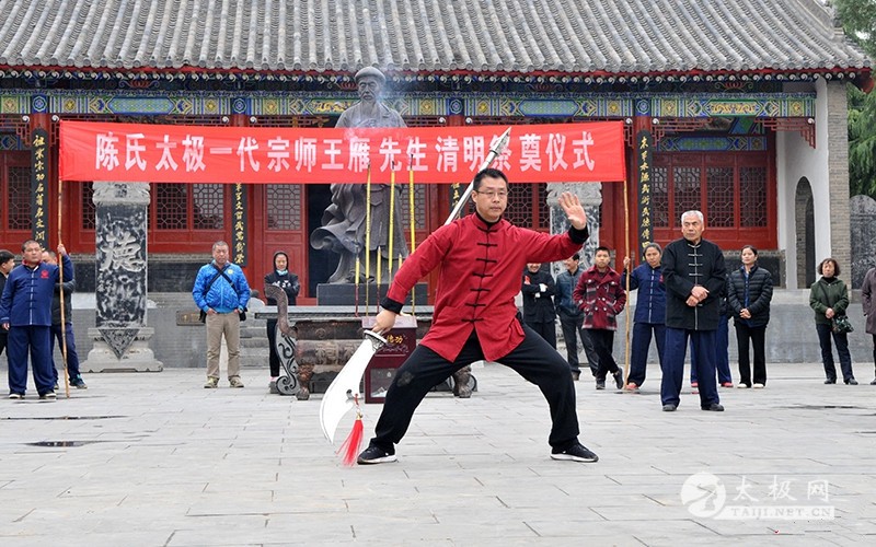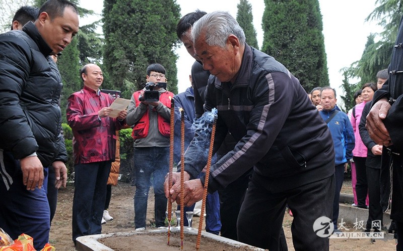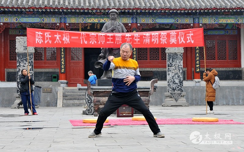 王长江老师率众弟子及同仁行鞠躬礼 (太极网报道)2018年4月5日,王雁宗师祭奠仪式于太极拳发源地温县陈家沟太极拳祖祠举行,王雁宗师后辈及王雁传统太极拳传人借清明节为契机,悼念先师,缅怀先师传拳之恩德,借以激励后辈继承先师之志愿,弘扬太极文化。 仪式主持人 王福礼老师向陈式太极拳先祖陈王廷宗师上香 众人集体为一代大家朱老虎致哀三分钟 众人向一代宗师王雁先生纪念碑行鞠躬礼 王福礼老师向一代宗师王雁上香敬酒 王雁之重孙王会战代其父王长江宣读祭文 王雁宗师重孙王会战代其父王长江老师宣读悼念王雁宗师祭文。祭文中缅怀了王雁大师的高尚武德、高超武艺,感念他一生为中国传统武术事业发展所作出的巨大贡献,表达了弟子后辈们对先师无比崇敬之情与心中的怀念之情。同时,王会战表示,用在清明节用祭奠先贤的方式,缅怀前辈,传承发扬太极拳法,踏着先贤们的足迹,传承中华民族传统文化的精髓。 太极大师朱老虎之长子朱堡垒先生讲话 朱堡垒发表讲话,感念先辈传拳之辛劳、祈求先辈佑泽师门,并号召大家团结一致,尊师重道,继承先辈的意志,为传承太极拳、传播太极文化不懈奋斗。广育太极人才,为太极拳事业的发展做出更多更大的贡献。 现场表演 责任编辑:太极网陈超 |