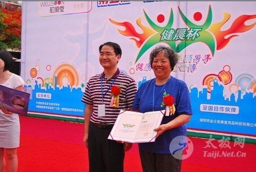 健晨杯大赛,感谢一位一直以来默默支持我们活动,为了我们活动能够顺利的开展,跑前跑后的李锦嫦女士。健晨杯大赛组委会授予李锦嫦女士为我们健晨杯大赛的“推广大使”的荣誉称号,中国健康教育项目推广工程•睡眠健康教育协作中心专家,“健晨杯”全国中老年剑拳操公益大赛组委会副主席为李锦嫦女士颁发“健晨杯推广大使”的荣誉证书。