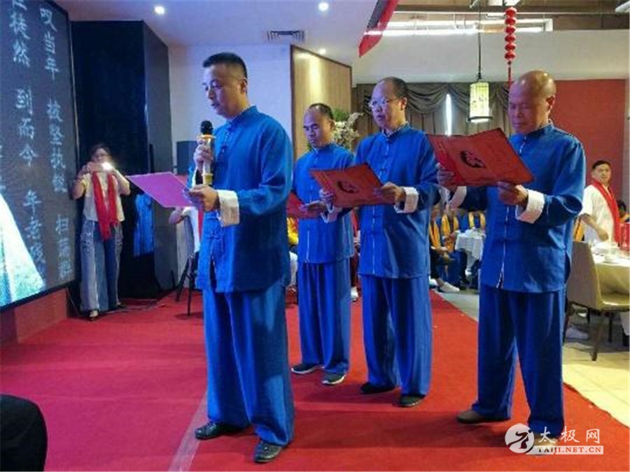 (太极网报道)2018年4月21日,太极名家孟凡收徒仪式于深圳市坪山区金茂园大酒店举行。本次有宁蝶棉、李海滨、曾祥宏、丁强胜等四位优秀的太极拳爱好者正式拜入孟凡老师门下,成为陈氏太极拳第十四代传人。 收徒仪式 收徒仪式由深圳市心理咨询行业协会监事洪刚主持。出席本次徒仪式的嘉宾有,深圳市社群太极拳运动协会执行会长欧阳德元、深圳市心理咨询协会秘书长刘勇、深圳市智慧天下网络科技有限公司副总经理陈文科、深圳市汉华兄弟传媒有限公司董事长徐涛、深圳市公仆文化传媒有限公司董事长李岳泽、深圳市坑梓太极拳协会会长庄汉杰、深圳市漯河商会常务副会长王明军、深圳市秀新太极拳协会会长周汉茂、深圳市前海隆鑫矿业控股有限公司董事长万亭军、深圳市坪山保安公司经理周卫东、横河电机(中国)有限公司服务经理胡泽辉、深圳市随行科技有限公司展销经理郭豪杰、太极拳传承人刘梅、太极拳传承人龙秀文、太极拳传承人许铭桂、太极拳传承人梅莹钰以及孟凡老师的亲朋好友也到场表示祝贺。 现场合影 收徒仪式开始后,孟凡老师向太极拳拳祖陈王廷像行叩拜礼,新入门弟子依次上前向师父行拜师礼,递交拜师贴,孟凡老师向部分优秀弟子颁发太极拳传承人证书,颁发入门证书及绶带。师父带领新入门的四位弟子和在深圳的部分弟子共同向太极拳始祖陈王廷行礼,以示太极拳代代相传,薪火相承之意。 孟凡老师训话 孟凡老师向新弟子训话,他希望弟子们能够恪守门规祖训,用心练拳,闻鸡起舞,时刻将练拳传拳放在心中,让太极文化造福更多大众。新入门弟子代表李海滨 发表讲话,他表示将会严格遵守师父教诲,认真学拳,提升自身太极拳境界,为太极拳的传播和推广做出自己的贡献。深圳市心理咨询行业协会监事洪刚作为今天拜师仪式的见证人代表发表讲话,他希望这些新加入太极拳大家庭的弟子们能够秉承传统太极拳精神,不骄不躁,静气凝神,静下心来用心习练,为太极拳的传播和发展做出更多的贡献。 现场合影 孟凡老师表示,感谢今天参加收徒仪式的嘉宾和朋友,感谢深圳市坪山金茂园鹏厨酒店鼎力支持。同时,他希望新入门弟子能够真正的领悟陈氏太极拳的精髓,学习最纯粹的太极拳文化,为陈氏太极拳发扬光大而不懈努力。 责任编辑:太极网陈超 |