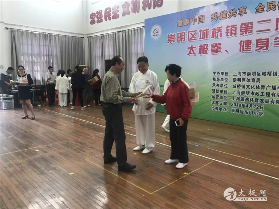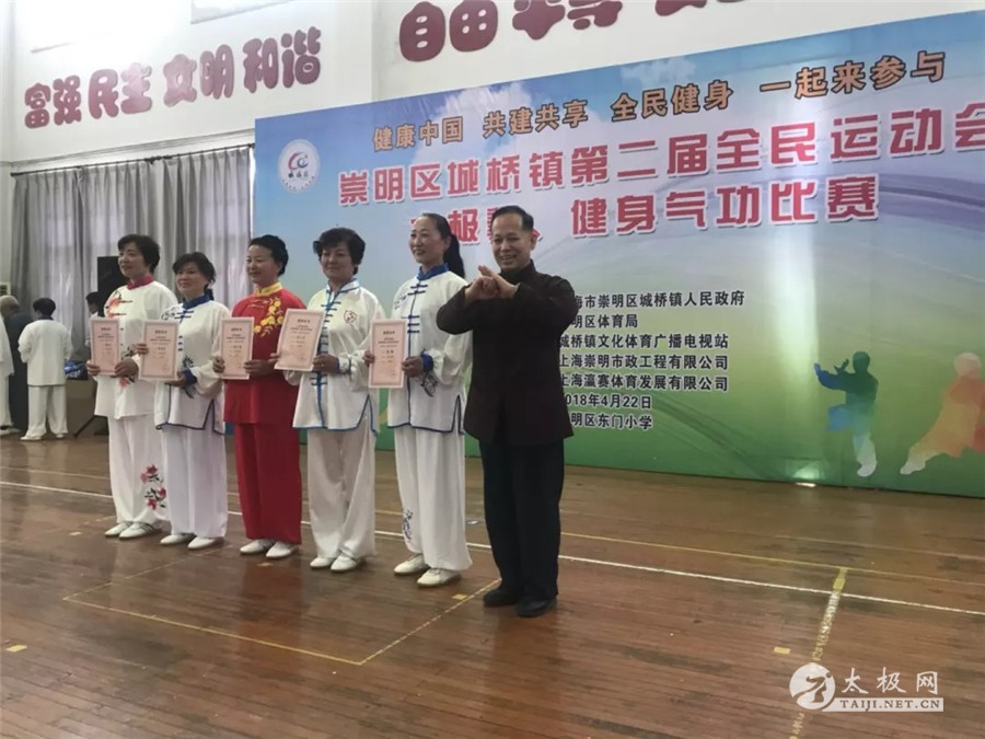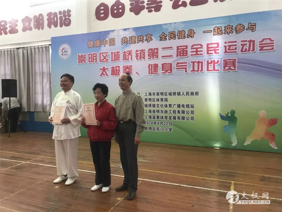 (太极网报道)2018年4月22日,上海市崇明区城桥镇第二届全民健身运动会太极拳、健身气功比赛在镇文化活动中心隆重举行。副镇长沈振香,镇文化站站长张湘屏出席了开赛仪式,大宋体育产业股份有限公司董事局主席宋斌先生,总裁倪平远先生,副总教练刘海建先生应邀出席。 开幕式上,宋斌先生表演了太极拳,舒展大方、劲在内涵的展示,赢得了热烈的掌声。 担任此次比赛评委的是弥红玲、李静、张星;副镇长沈振香、文化站站长张湘屏、嘉宾宋斌先生和倪平远先生为获奖选手颁发奖项。 宋斌老师表示,全民健身旨在提高国民体质和健康水平,通过举办太极拳、健身气功等一系列的比赛和活动,促进全民运动,带动全民健康。这与大宋公司所倡导的“推广太极拳,促进全民健身运动”的理念也是一致的,一起学习太极,乐享人生。 |