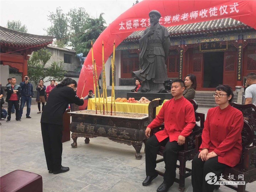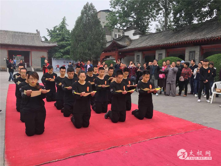 (太极网报道)2018年4月25日,太极名家王竟成收徒仪式于太极拳发源地温县陈家沟太极拳祖祠举行。据了解,本次共有邓霞、朱丽娅、宋德韶、孙宁、杨亮、李双利、吕广锐、王文皓、沈仲明、葛文剑、臧志刚、王金航、丛伟、穆建委、王冠清、王璟铭等十六名优秀的太极拳爱好者拜入王竟成老师门下,正式成为太极拳传承人,肩负起传承太极拳,弘扬太极文化的历史使命。 收徒仪式由魏满姣主持,出席今天收徒仪式的领导及嘉宾有温县体育局副局长任海林,国际太极拳大师王西安及其夫人陈新意,王西安拳法研究会会长阎素杰,王竟成老师师兄弟王战军、陈三虎、李利清、辛强、徐胜、耿见峰、王战国、乔秀军、韦俊、沈维萍、张艳、于福收、沈忠明等以及众多王竟成老师的亲朋好友均到场,共同见证王竟成老师喜纳新徒,为太极拳传承再添强大助力。 王西安向太极拳始祖敬香 王竟成向恩师王西安大师行叩拜礼,叩谢恩师传拳授业,并请师父准其收徒传艺,传承太极拳技艺,弘扬太极文化。王西安大师太极拳始祖陈王廷及历代宗师敬香行礼。随后,收徒仪式正式开始。新入门弟子齐声诵读敬表文,依次上前递交拜师贴、行拜师礼、敬拜师茶,师父为新入门弟子披弟子服、颁发弟子书并带领众弟子向太极拳始祖陈王廷行叩拜大礼,感念先辈创拳之辛劳,缅怀先师传拳之恩德,以示太极拳代代相传,薪火相承的传承古礼。 王竟成向太极拳始祖敬香 收徒仪式 王竟成老师告诫新入门的弟子要够恪守门规祖训,认真习练太极拳,用心去体悟太极文化,努力成为合格的太极拳传承人,为传播和弘扬太极拳文化作出自己应有的贡献。 王竟成训话 乔秀军 新弟子宣誓 新入门弟子代表表示,今日能够觅得良师,成为王竟成老师的弟子,感到无比的荣幸。今后定当谨遵师父教导,恪守门规祖训,为早日成为合格的太极拳传承人不断努力,为太极拳的传播和推广贡献出自己的一份力量。 新入门弟子与师父、师母合影 合影 王竟成向参加本次收徒仪式的嘉宾及领导表示感谢,对恩师王西安的到来感到十分的荣幸。他希望新入门弟子可以秉承太极拳传承人的责任,担负起弘扬太极文化的历史使命。他还表示,今后将会继续致力于太极拳的推广和传播,培养更多优秀的太极拳传承人,为太极拳事业的发展奋斗终生。 王竟成简介: 王竟成老师5岁习武,13岁开始学习拳击散打,21岁追随石天龙练习李小龙截拳道。1995年被聘为中国人民解放军北海舰队九零一部队军校搏击总教官,1995年接触了陈氏太极拳,1997年创办招远精诚搏击俱乐部。 2010年学习王西安拳法,并于2015年拜入王西安大师门下,成为王西安大师入室弟子,成为王西安拳法研究会黑河分会、烟台分会会长。 2015年澳门国际武道大赛特邀武术名家,同年在阿里巴巴太极禅苑总苑创下最强寸拳八秒钟击破花岗岩六十块的阿里吉尼斯世界纪录。2017年被聘为阿里巴巴太极禅苑常熟分苑总教练。 王竟成老师痴迷武术数十载,传道授业正当年。多年来初心不改,情系陈家沟,牢记太极拳根源和传承的使命,为太极文化传播推广不懈努力地贡献力量。 责任编辑:太极网陈超 |