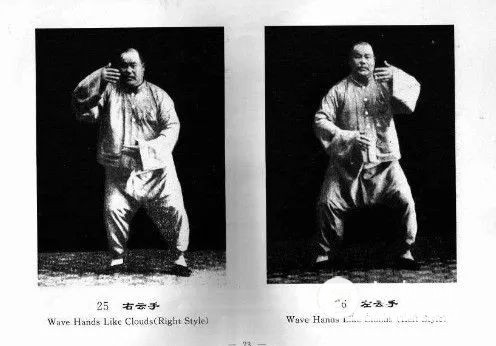 道理很简单,揽雀尾中含有“掤捋挤按”,倒撵猴中含有“採挒肘靠”(笔者按:这里的倒撵猴指的是少候拳架中的“采挒肘靠倒撵猴”),关系到八种基本劲别的运用,必须反复演练,方可熟能生巧,运用自如;云手势所以连续三遍练习,在于它不但有着其他拳势难以替代的多种劲别和技击作用,而且还在于它有着检验太极拳演练水平的功效。 先生言,太极拳演练得法、进入佳境,练到第一趟云手时,劳宫、十宣穴当有胀热或针刺般感觉,拳家谓之“得气”;练至第二趟云手时,腹部胃肠蠕动有声,拳家谓之“雷鸣”,又名“翻江倒海”;练之第三趟云手时,舌下津液自生、两耳有风,拳家谓之“气通”,医家、道家认为,“气为添年药,津为续命芝;气为水母,水为命根,勤而行之,可以长生。” 因为云手不同于其他拳势而走横劲,谓之“换味”,故有上述奇异显现,因此,云手势有着检验太极拳演练水平的功效。前辈述说如上,但在拳架套路的练习实践中,各人的感觉并不统一,这就是太极拳(气功)实践中人们常说的所谓“个体差异性”。