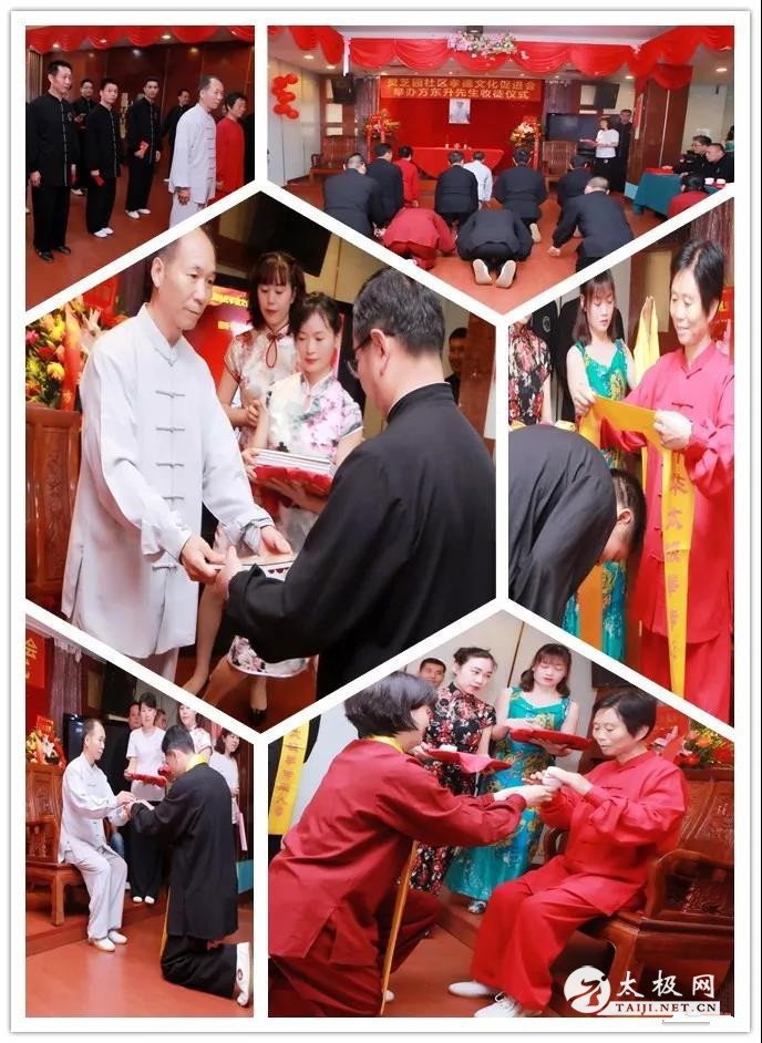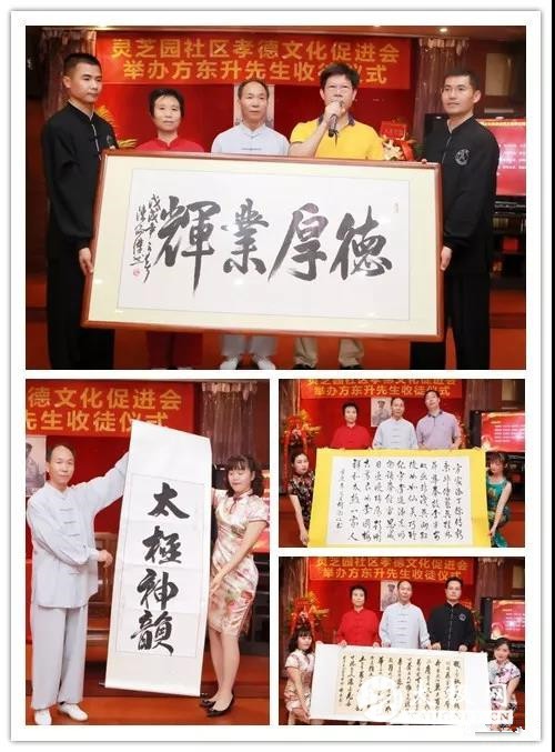 (太极网报道)4月25日,太极名师方东升深圳收徒仪式于宝安区大华酒店隆重举行!据了解,本次收徒仪式在深圳市宝安区灵芝园社区孝道文化促进会的大力支持下,历经数日的精心筹备,徐传新,吴桂林,李平安,吴向红,李国梅,潘光明,雷思威,吴巧玲,彭 刚等九名优秀太极拳爱好者于今日正式拜入方东升老师门下,成为太极拳传承人,担负起传播太极拳、弘扬太极文化的历史使命。 宝安区街道办、社区相关领导,宝安电视台、宝安日报等媒体以及一直以来关心和支持方东升太极团队发展的相关企业领导出席本次收徒仪式,广大社区的太极爱好者和学员于到场嘉宾和拳友欢聚一堂,共同见证陈氏太极香火的延续和中国传统文化的传承! 仪式开始前,弟子们分别表演了“东升太极养生功”和刀剑等节目为本次活动助兴。拜师仪式在一曲欢快的《请到灵芝园里来》中拉开帷幕。在主持人的介绍下,九位身着太极服的准弟子在师父和师娘的带领下,向陈氏太极先祖陈王廷祭拜。随后新弟子向师父师娘行入门叩拜礼 ,由师父和师娘向弟子颁发传承人证书和佩戴传承人缓带,弟子代表向师傅师娘敬茶! 收徒仪式 弟子潘光明宣读拜师贴, 由吴桂林带领众弟子宣誓、徐传新代表新弟子讲话、大师兄余跃宣读陈氏门规、新学员代表黄海霞发言,所有流程都在紧张,严肃、有序的氛围中进行! 方东升老师为每一位新入门弟子赠书两本,一本是,《太极名师方东升》是方老师多年心得体会和练太极经验之谈。另一本是由深圳市宝安区新安街道灵芝园社区党委编著的《孝德促进精彩纷呈》一书,此书将传统太极文化、武德文化与灵芝园孝德文化融合,体现了灵芝园社区“孝德促进,精彩纷呈的良好社风”。 嘉宾们也纷纷敬献书画,对方东升先生收徒表示热烈祝贺!社区陈书记讲到:“方东升师傅扎根灵芝园社区两年来,为社区的孝德文化节建设和社区健康工程做出了卓越的贡献,希望东升太极团队能一如既往的和社区工作站保持紧密合作,共同推进社区的孝德文化建设和健康体系建设!”。 收徒仪式 合影 方东升表示,“孝行天下,弘扬正气,传承太极,播撒健康,这是我和弟子们应尽的责任和义务。在今后的太极文化传承中,我将带领弟子们一如既往的,以社区、学校、企事业单位为平台,发扬“团结、协作、奉献、感恩”的东升太极团队精神,为建设宝安碧海之城、文明之区,做出更大贡献!” 本站编辑:太极网陈超 |