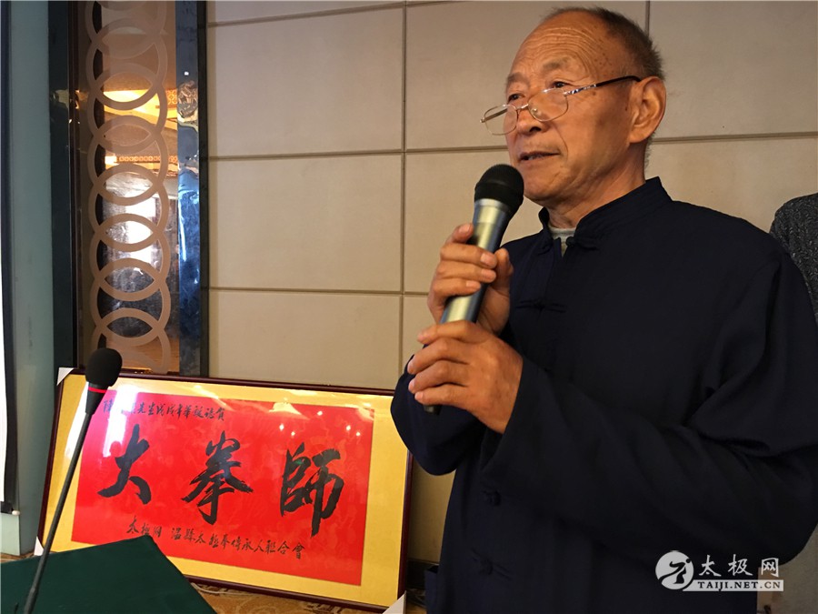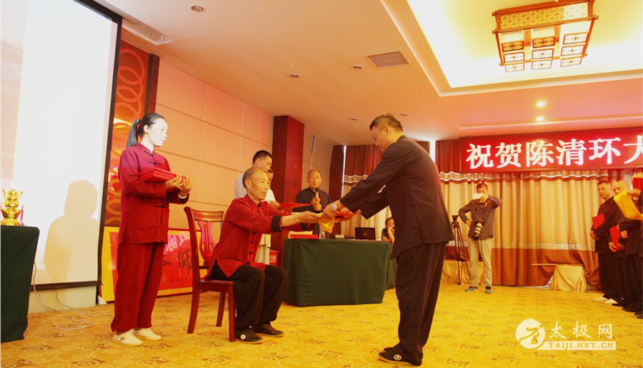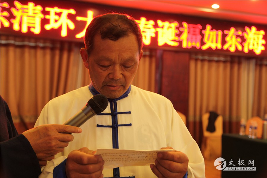 传承人不懈努力,为太极拳的传播和推广做出应有的贡献。 拜师仪式 新入门弟子与师父合影 拜师仪式圆满礼成后,陈清环大师72岁寿诞庆典仪式随之举行。陈清环大师弟子徐保利代表众师兄、师弟致祝寿辞。现场陈氏族人晚辈向陈清环大师拜寿。随后,陈清环大师全国各地弟子代表纷纷上前向师父送上生日的祝福。 刘苗旺 于保家 拜寿仪式 太极网创始人、温县太极拳传承人联合会会主席刘洪奇向陈清环大师赠送“大拳师”匾额。刘洪奇表示,陈清环大师多年来致力于陈氏太极拳小架的传播推广,数十年如一日鞠躬尽瘁,弟子遍布全国各地,为太极拳事业的发展做出了极其突出的贡献。 赠送匾额 刘洪奇讲话 陈清环大师女儿陈坤娜致答谢辞,她向参加今天活动的领导及嘉宾表示感谢,向从全国各地赶来参加活动的陈清环大师弟子表示欢迎。同时,她向新入门的弟子们表示祝贺,希望他们可以认真习练太极拳,为太极拳的传承传播做出积极的贡献。 陈坤娜致答谢辞 现场表演 活动现场还进行了精彩的太极拳表演,陈清环大师弟子各展技艺,用他们精湛的拳技为陈清环大师的寿诞送上最真挚的祝福。至此,陈清环大师72岁寿诞庆典暨收徒仪式圆满礼成。 责任编辑:太极网陈超 |