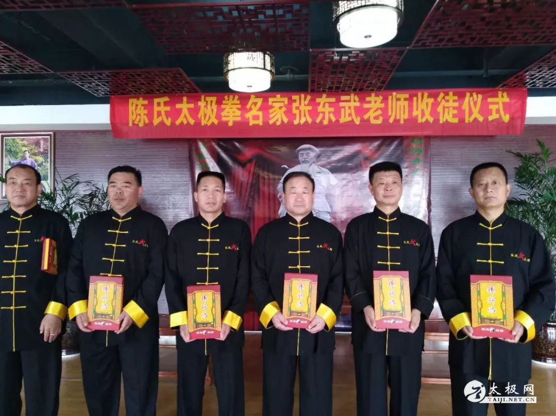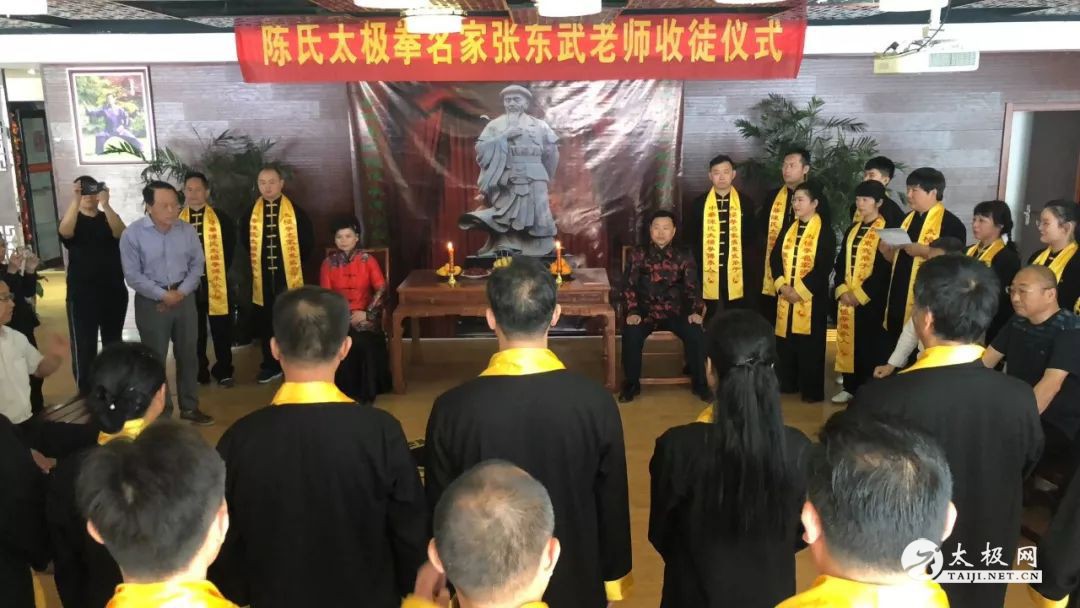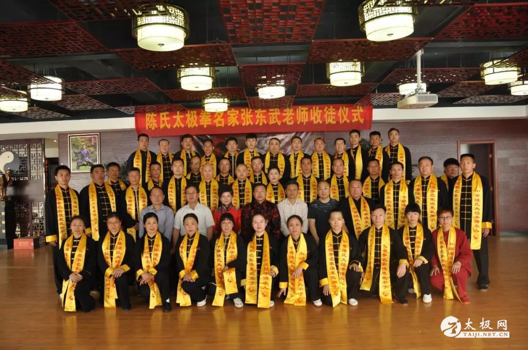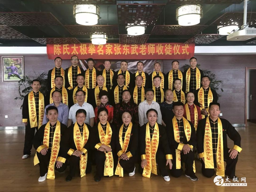 (太极网报道)5月2日,中国武术七段、温县太极十杰之一、国际太极拳文化传播大使、陈正雷大师入室弟子、陈氏太极拳第十二代传人张东武收徒仪式在郑州市东武太极研修院经开区太极馆隆重举行。来自全国各地的二十五名弟子在太极拳祖师陈王廷像前拜师,如愿以偿成为陈式太极拳第十三代传承人。 本次拜师的弟子有:刘中敏、张景宏、杨石昆、刘国顺、杜颖涛、王杰、陶安、岳太、刘波、张杰、李得恩、吴今朝、杨建超、马新运、罗妙丽、许艳丽、李建立、谷利明、孙建亮、张志、刘小风、刘金福、刘海涛、田海涛、雷小华。