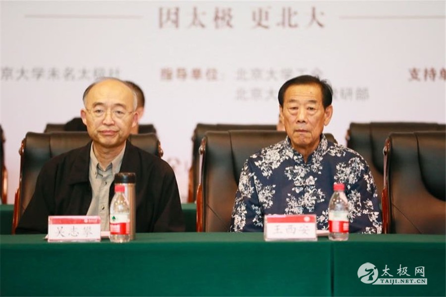 (太极网报道)5月2日,国家级非物质文化遗产项目陈式太极拳代表性传承人王西安受北京大学武术研究中心邀请,出席北京大学参加未名太极社成立仪式,并受聘未名太极社顾问。 北大经济学院院长孙祁祥致辞欢迎王西安大师的光临,并祝贺王西安大师受聘北京大学未名太极拳社顾问。她在致辞中谈到,太极拳的动静、虚实、开合、刚柔、轻重、蓄发、进退等都是阴阳的对立统一体。可以说,打太极能让自己内外兼修,于运动中学习、领会、体验、汲取博大精深的中国传统文化,真是一件曼妙无比的事情。 在全校欢庆北大建校120周年之际成立北大未名太极社,意义非凡,北斗之尊,大展宏图;太平盛世,极目远眺寓意北大在中国乃至世界都具有不可替代的地位,有着理想和抱负的北大人应当大有作为。 活动期间王西安大师观看了未名太极拳社集体太极拳表演,并耐心为大家纠正拳架,讲解要领,示范太极拳手眼身法步和呼吸放松的协调配合。王西大师的平易近人和精妙功法受到北大太极拳社社员一致好评。 王西安大师以及王西安拳法研究会会长阎素杰会长就太极进校园,健康工作六十年以及王西安拳法八式的公益推广等话题同北大原常务副校长吴志攀,历史学家原北大副校长副书记郝斌,法学家、北大经济学院院长孙祁祥,未名太极拳社社长王东敏等进行了深度交流。 北大经济学院院长孙祁祥教授用北大太级四个字来当作活动的结束语:北斗之尊,大展宏图;太平盛世,极目远眺,它表达了我对北大未名太极社的一个愿望:北大在中国乃至世界都具有不可替代的地位,有着理想和抱负的北大人应当大有作为;中国正处在一个伟大的新时代,但仍需“风物长宜放眼量”,不管是对国事、家事还是天下事,都当如此 王西大师为未名太极拳社社员辅导课后,吴志攀校长即兴赋诗: 《晚课:未名太极社成立有感》 今日燕园如玉碧, 青春飒爽英姿齐。 修心健体任督畅, 养气含柔山岭移。 天地玄黄白翅亮, 洪荒宇宙锦鸡奇。 未名湖水隐灵性, 云手波光练太极。 本站编辑:太极网陈超 |