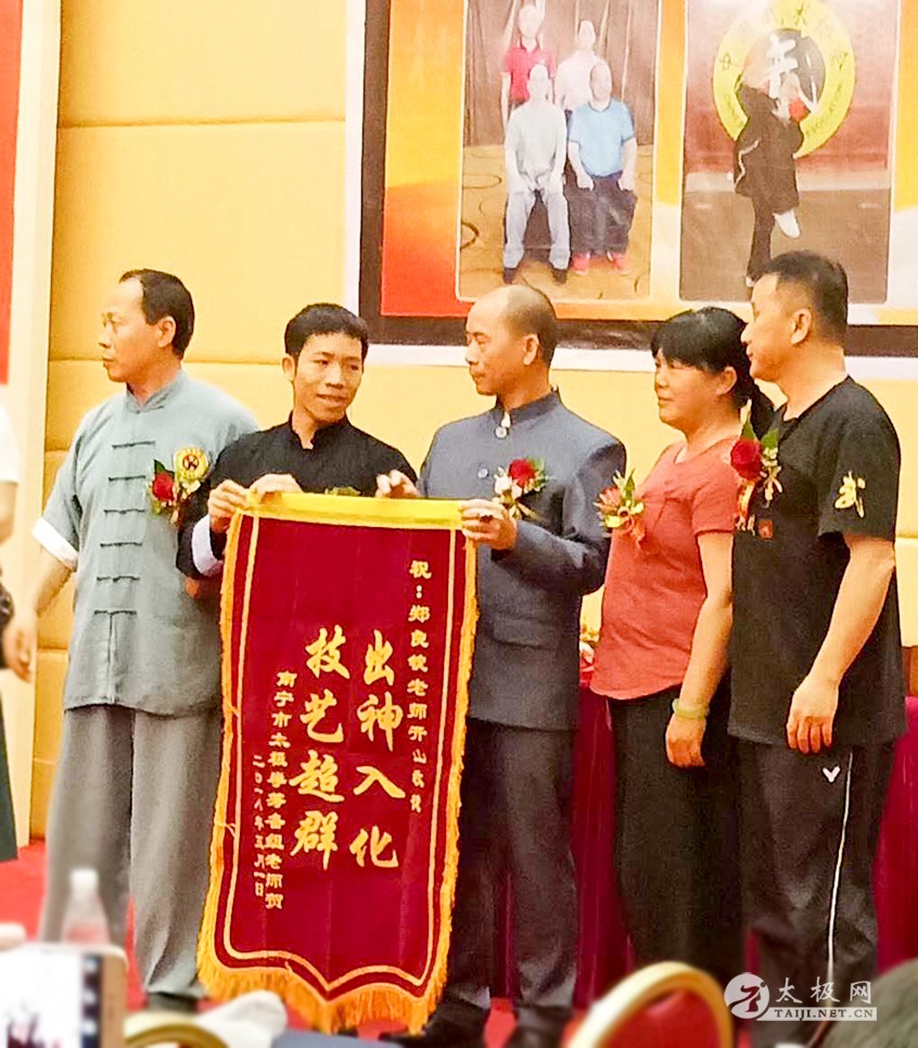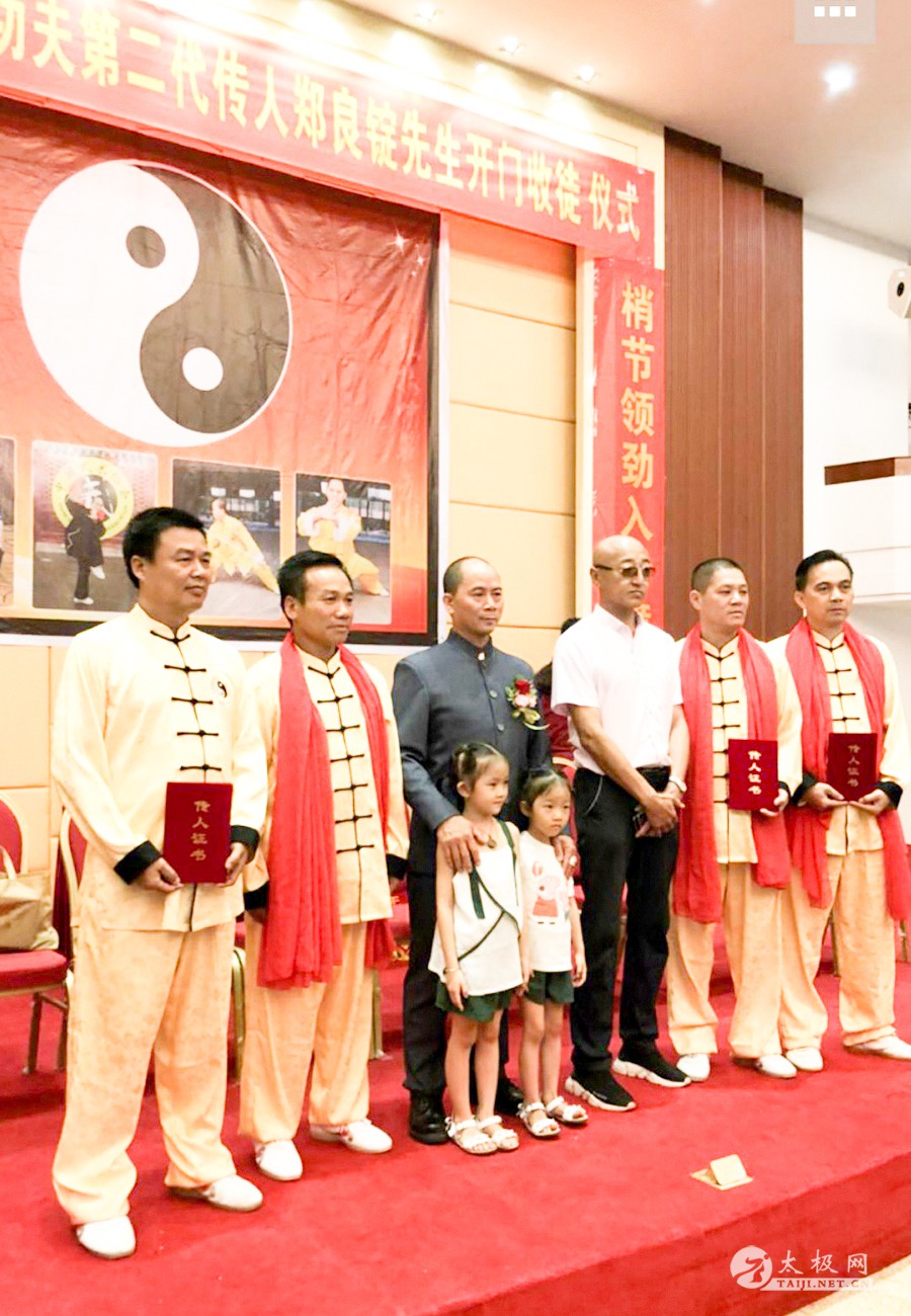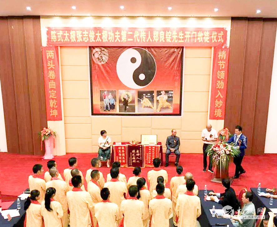 (太极网报道)5月1日,东兴市陈式太极功夫教练、陈氏太极拳第十三代传人郑良锭收徒仪式在东兴市东润大酒店隆重举行。来自全国各地的二十二名太极拳爱好者拜入郑良锭老师门下,正式成为陈氏太极张志俊功夫第三代传人,如愿以偿成为陈式太极拳第十四代传承人。 本次拜师的弟子有:董玉群、谢启鑫、缪艳、黄永远、何进强、朱克勇、梁家初、颜正德、钟燕容、黄小妮、修玉杰、韦昌雄、韦文店、林国猛、江林钊、黄永清、徐卫晟、曾挺、李明旭、黄润国、周易静、韦婥璘。 现场嘉宾 郑良锭与师父潘洪军 参加拜师仪式的嘉宾有: 郑良锭师父潘洪军 东兴市文化体育广播电视出版局副局长潘子峰 东兴市武装部政委黄辉明 东兴市武术协会会长欧家拳传人庞子拾 南宁市武术主席陈通远 郑良锭师弟彭金宝 郑良锭师弟刘友面 江西省修水县凤凰山武馆馆长王卫彬 陈家沟陈氏太极拳协会南宁分会会长蓝宁红 开门八极拳第九世传人、南宁名极武馆馆长赵联安 开门八极拳第八世传人、吴式太极拳第五代传人安宁武医道馆馆长胡奕奕 杨式太极拳第六代传人、佛山市禅城区杨澄甫式太极拳培训中心主任陈明晃 陈氏太极拳传人李娟娟 收徒仪式 新入门弟子 郑良锭 拜师仪式在主持人的介绍下拉开帷幕,身着太极服的准弟子依次上前递交拜师贴、行拜师礼、敬拜师茶,师父回礼。郑良锭老师向新入门弟子训话,他希望新入门的弟子们能够恪守门规祖训,认真习练太极拳,用心体悟太极文化,为早日成为合格的太极拳传承人不懈努力,为太极拳的传播和推广做出应有的贡献。 南宁武术主席陈通远 新弟子代表韦昌雄发言表态,感谢师父传艺之恩,一定不辱师门认真习练。见证嘉宾赵联安先生在致辞中,对郑老师、弟子们表示祝贺,对郑老师高超的技艺给予充分肯定,并对郑老师为太极事业的发展、传承所做出的贡献与努力表示赞赏。 潘洪军老师首先恭郑良锭喜收新徒,为太极拳传承再添新力量,同时也祝贺今天拜入郑良锭老师门下的弟子,欢迎他们加入太极拳这个大家庭。希望他们能够在老师的指导下用心习练太极拳、体悟太极文化,早日成长为优秀的太极拳传承人,为太极拳的传播做出更多的贡献。 嘉宾 太极拳表演 嘉宾们也纷纷敬献旗锦,对郑良锭老师收徒表示热烈祝贺!东兴市陈式太极功夫馆的学员现场进行了太极拳集体表演,引来现场阵阵喝彩。随后众弟子同师父、师母及与贺嘉宾集体合影留念! 合影 郑良锭向参加本次收徒仪式的嘉宾及领导表示感谢,对恩师潘洪军的到来感到十分的荣幸。他希望新入门弟子可以秉承太极拳传承人的责任,担负起弘扬太极文化的历史使命。他还表示,今后将会继续致力于太极拳的推广和传播,培养更多优秀的太极拳传承人,为太极拳事业的发展奋斗终生。 责任编辑:太极网小田 |