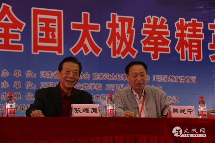 现场嘉宾 (太极网报道)2018年5月3日,第四届(正阳)全国太极拳精英赛于河南省正阳县隆重开幕,来自上海、山东、黑龙江、河北、河南、四川、重庆、浙江、辽宁、北京等地的百余支代表队千余名太极健儿将会在四天的比赛中在赛场上展示他们的太极风采,绽放太极拳的夺目芳华。 央视体育频道著名主持人韩乔生担纲主持,正阳县教育体局局长熊兴锋主持开幕式。出席开幕式的领导及嘉宾有:原中国武协主席张耀庭,原中国公安大学教授、高级教官韩建中,原驻马店市政协主席刘军甫,中原资产总裁岳胜利,河南大学公共体育部主任洪浩。 张耀庭讲话 本次比赛吸引了各大媒体的关注,人民日报社高级记者王霞光、世界太极拳网总编余功保、中国体育报记者蒋亚明、中华武术杂志副主编王涛、华奥星空网(中国奥委会官网)记者刘向前、人民论坛网记者姚胜利、中国网记者李永康、中新网记者李贯阳、河南文艺出版社总编辑单占生、河南经济网记者杨大海、大河网记者陈要逢以及澳门文武中国杂志和香港新武侠杂志等媒体代表出席了开幕式。 裁判员入场 河南省武术协会副秘书长兼办公室主任汤西印、河南省武术协会副主席河南省太极拳协会秘书长陈斌、原驻马店市政协法工委主任刘杰、驻马店市教体局副书记鄢忠伟、正阳县人民政府副县长刘业鹏、驻马店市老区建设促进会会长、驻马店市老体协主席欧阳忠宽、原正阳县人大常务副主任正阳县陈式太极拳协会会长车顺才、原正阳县政协副主席正阳县陈式太极挙协会副会长霍毛喜、正阳县教育体育局副局长李国念、正阳信赖集团营销总监吴新良等河南武协及正阳当地领导及嘉宾出席开幕式。 裁判员入场 来自太极拳发源地温县的相关领导及嘉宾也到场参加本次开幕式,他们是温县县委宣传部副部长、温县太极拳武术文化管理中心主任宋明军,温县体育局副局长任海林,原温县太极拳开发委员会主任、太极网名誉主编原福全等。 主持人韩乔生 众多武术界的嘉宾也出席了今天的开幕式,江苏省武术协会主席陈伟,广东省搏击协会执行会长郭健鸿,陈家沟太极拳功夫学校校长陈照森,国家级非物质文化遗产和式太极拳代表性传承人、温县和式太极拳学会会长和有禄,四川省省级非物质文化遗产成都青城武术代表性传承人刘绥滨,温县有刚太极武校校长兼总教练陈有刚,河南省太极拳协会常务理事陈正雷工作室主任王天云,郑州东武太极研修院院长张东武,温县张保忠太极武院院长张保忠,温县陈家沟太极功夫馆馆长张福旺,陈家沟太极拳研究会会长陈志强,温县太极武馆馆长陈二虎,陈家沟太极名家陈冠军,温县太极园郑彩霞拳馆馆长郑彩霞,温县天才太极院院长朱向华,陈家沟陈三虎文武学校校长陈三虎,陈家沟太极拳武校校长陈冲,陈家沟太极拳功夫学校副校长兼总教练陈志伟,西安市武协副主席、西安陈全忠太极拳学校校长陈西立,江苏省中国式摔跤推广委员会主席汪新准,大庆油田陈家沟太极拳弘道学校校长徐彦峰,石家庄市陈氏太极拳专业委员会会长、陈氏太极拳学校校长杨合发,保定陈氏太极拳研究会会长张东海,北京杨式太极拳研究会会长张勇涛,武式太极拳名家、邯郸学院太极拳特聘教授冀长宏,北京孙式太极拳研究会会长刘树春,石家庄藁城区武协主席、陈式太极拳名家刘建辉,伊川县陈式太极拳推广会会长、太极拳名家王红生,常德市陈式太极拳协会会长张金菊,吴式太极拳名家李洪舜,博梓潼山武术学校校长倪磊等。 温县县委宣传部副部长、温县太极拳武术文化管理中心主任宋明军 温县体育局副局长任海林 陈照森 张东武、陈冲、和有禄 张保忠、陈二虎 陈西立、杨合发 张福旺、陈三虎 朱向华 陈有刚 正阳县人民政府副县长刘业鹏致欢迎辞。他向出席今天开幕式的领导和嘉宾以及从全国各地前来参赛的太极健儿表示欢迎,同时希望健儿们能赛出风格、赛出成绩,充分展示太极拳的无穷魅力,并表示正阳县人民政府和各相关单位将会全力以赴保证赛事各环节顺利开展,与参赛太极健儿共同打造一场太极拳的饕餮盛宴,为弘扬太极文化,推动太极拳事业发展积极进取,不懈努力。 原国家武管中心主任、中国武术研究院院长、中国武协主席张耀庭在讲话中指出,(正阳)全国太极拳精英赛至今已历四届,参赛人数不断增加、赛事规模不断扩大、赛事体制不断完善,来自全国各地的太极健儿共聚正阳,共武太极,共同为中国传统武术的复兴而努力,希望健儿们能在赛场上展示出中华传统武术的魅力,并预祝第四届(正阳)全国太极拳精英赛圆满成功。 王大春讲话 陈斌讲话 余功保讲话 随后,余功保、陈斌等先后发表讲话,祝贺第四届(正阳)全国太极拳精英赛开幕。本次大赛总监正阳县大春太极山庄、正阳县大春文武学校董事长王大春在讲话中向参加今天开幕式的领导及嘉宾表示感谢,并对从全国各地赶来参加本次大赛的太极健儿们表示欢迎,同时他表示,(正阳)全国太极拳精英赛一路走来,受到了正阳县各级领导及相关部门的大力支持,比赛的成功举办离不开正阳县县委县政府的正确领导,离不开社会各界人士的关心,更离不开全国各地太极拳组织、拳馆、学校及广大太极拳爱好者们的热心参与。他还一直以来关心和支持正阳太极拳事业发展的太极拳发源地温县的太极拳同仁表示衷心的感谢,并预祝本