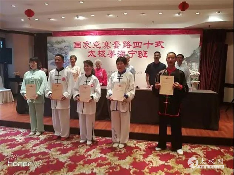 (太极网报道)2018年4月29日-5月1日,国家四十式竞赛套路海宁培训班于文化重镇海宁举行。本次培训班吸引了来自来自哈尔滨、江苏、安徽、浙江等全国各地三十多名太极拳爱好者参加。 开班仪式嘉宾 据了解,本次培训班由杭州市岑德教育信息咨询有限公司主办,并邀请了杨式太极拳第五代代表性传人、太极大师丁水德回家乡主讲传艺,杨式太极拳第六代传人杨周铨、金学琴任助教。丁岑亮致辞 丁岑亮为开班仪式致辞,他讲到:“气以直养而无害,劲以曲储而有余。习太极者,伸筋拔骨,强身健体,不卑不亢,切记培训中一定要放下事物、放下职务、放下套路。以初学者心态学习对待,方能练就‘下有落地生根’之势,练就‘上有不倒翁’之法”。 丁水德授课 培训伊始,丁水德大师就直接向大家展示了一套完整的杨氏太极拳法。身后认真的学员已经开始情不自禁的跟着丁大师学了起来。丁水德老师还在在大家练习过程中更是直接走入学员周围,挨个儿指导动作。 丁水德指导学员 培训班现场 两天的培训结束后,学员们在现场参加了结业考核,最终顺利通过考核,拿到结业证书。学员们纷纷向丁水德大师两天不辞辛劳的教学表示感谢,同时对为本次培训班付出辛苦努力的教练团队表示感谢。 喜获结业证书 现场合影 本站编辑:太极网陈超 |