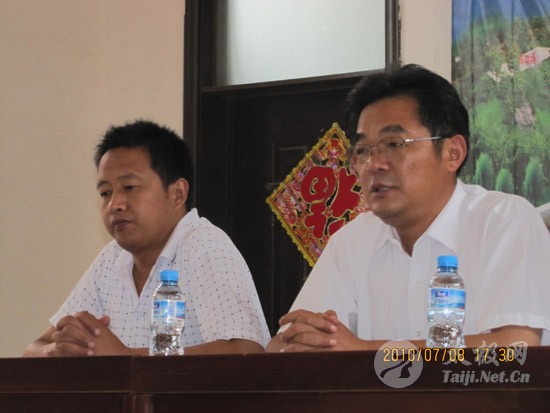 7月8号下午,首批培训班在大春太极山庄演武厅举行。县教体局党组书记张永平、副局长喻强及主抓体育的领导王芳和王大春大师等人,参加了开班典礼。