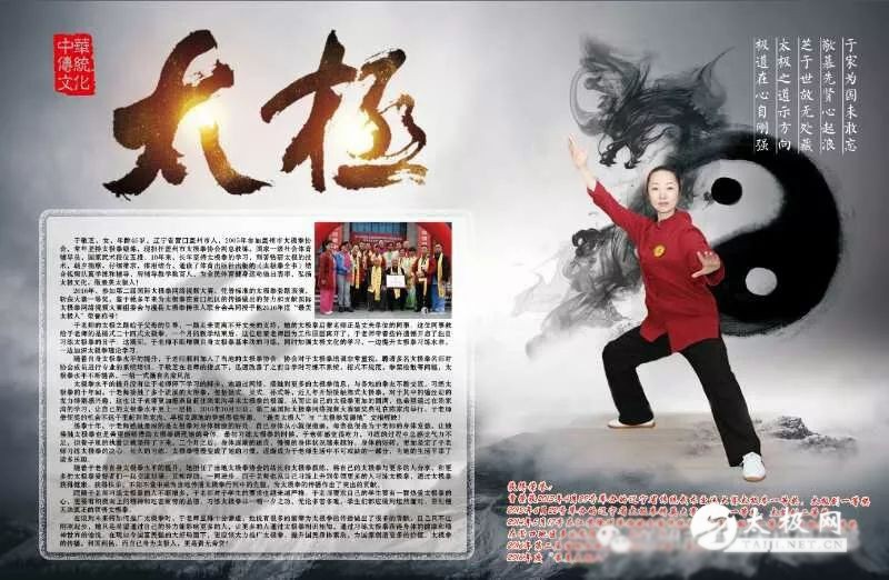 盖州市神韵太极拳俱乐部位于怡祥花苑南门,是一家一健康养生模式为主题的太极养生馆。馆内150平方米左右,分上下两层,一楼有方便您更换衣物的更衣区,和休息区域二楼有宽敞的练习太极大教室,和各种练习太极器具。还有私人空间小教室,和品茶区域。将为您带来一种全新的健康生活方式。 如果你想学习太极拳,但不只是学习套路; 如果你练习多年,还仅仅只是练习套路; 如果您已经有套路基础但是并未真正掌握内功劲法; 如果您练拳多年一直在困惑之中,对太极拳理不能正确理解; 如果您想抓住青春年华依然年轻; 如果您也想像美女老板娘,美女老师一样年轻漂亮有内涵; 如果您真的为您的身体健康着想; 那么,请你不要错过这个难得的机会! 适合群体:有一定练拳基础的太极爱好者,养生爱好者、对传统文化感兴趣的朋友。可以带着练拳过程中的任何疑问困惑请于山老师指点迷津、答疑解惑。 于老师参加的一些活动及学习 心要静,身要动 与其生病去医院花几万几十万治疗费的同时让自己和家人饱受痛苦, 不如尽早抓住机会用心努力学习太极拳, 用去医院治病钱的零头练就好身体好功夫! 一起练太极吧,为自己,为家人…… ![]() 于敬芝 于敬芝,辽宁省营口盖州市人,2005年参加盖州市太极拳协会,常年坚持太极拳锻炼,现担任盖州市太极拳协会副总教练,国家一级社会体育辅导员,国家武术段位五段。10年来,长年坚持太极拳的学习,刻苦钻研太极的技术,朝夕揣摩,仔细推求,体用结合,通读了体育出版社出版的《太极拳全书》结合视频认真学练和辅导,所辅导教学数百人,为全民体育健身运动做出表率,弘扬太极文化,做最美太极人! 于敬芝 2016年,参加第二届国际太极拳网络视频大赛,凭借标准的太极拳套路表演,斩获大赛一等奖,鉴于她多年来为太极拳在营口地区的传播做出的努力和贡献国际太极拳网络视频大赛组委会与温县太极拳传承人联合会共同授予他2016年度“最美太极人”荣誉称号!