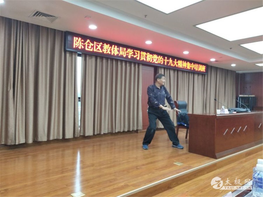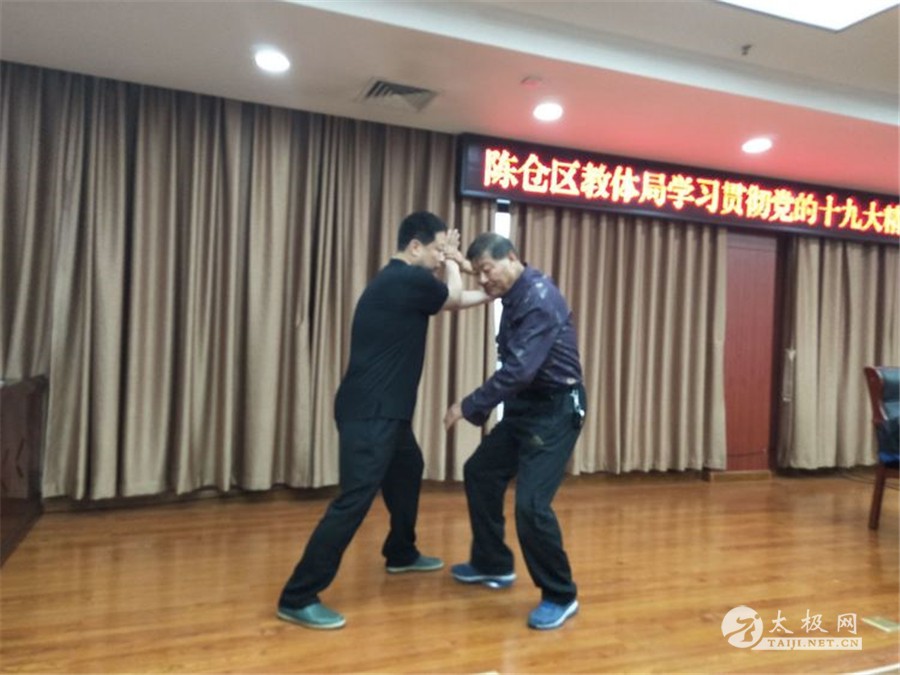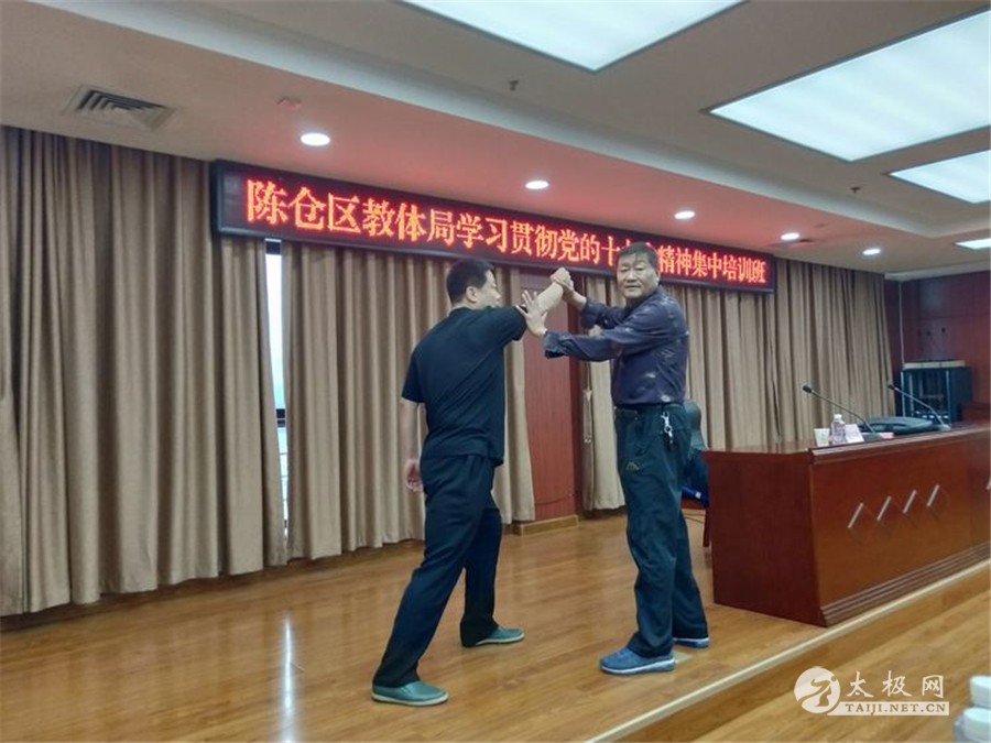 (太极网报道)5月19日上午,应宝鸡市陈仓区太极拳协会的邀请,宝鸡市太极拳协会会长、陈式太极拳第十一代传承人张中林在陈仓区机关会议室给陈仓区的太极拳爱好者讲授了一堂别开生面的太极拳课。 活动现场 宝鸡市太极拳协会副会长兼秘书长魏亚丽和副会长李星峰、曹彦、陈辉,陈仓区政协副主席李军会,宝鸡市太极拳协会副秘书长、市武术协会副秘书长陈仓区太极拳协会副会长兼秘书长任斌,陈仓区太极拳协会会长罗建森及宝鸡太极拳爱好者十余人也赶过来听课。现场150个座位座无虚席,2个多小时的时间,大家一直热情很高。 张中林现场展示太极拳基本技法 实战讲解 本站编辑:太极网陈超 |