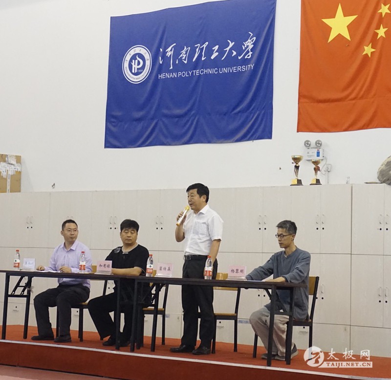 (太极网报道)2018年5月18至20日,河南省体育教师和式太极拳培训暨“太极名师进校园”系列活动于河南理工大学成功举办。本次活动由河南省学生体育总会武术协会、河南理工大学联合主办,河南理工大学体育学院(太极拳学院)承办。5月19日上午,开班仪式在体育馆内的武术馆举行,河南理工大学副校长翟传森、体育学院副院长杨黎明以及体育学院武术系主任王柏利出席开班仪式。 开班仪式 此次培训聘请国家级非物质文化遗产和式太极拳代表性传承人和有禄担任主讲。共有来自河南省各地区的50余名教师代表参与培训。 和有禄授课 活动现场 据了解,本次培训主要分为武术馆公开授课和《和有禄·和式太极拳述真》专题讲座两大内容。5月19至20日,在武术馆共进行了4场公开授课。和有禄老师担任主教,河南理工大学体育学院教师和慧超及河南大学民生学院张广超老师担任助教。武术馆公开授课现场,和有禄老师亲身示范,系统教授了和式太极拳三十八式,活动吸引了社会上大批太极拳爱好者慕名前来听课。 和有禄专题讲座中 5月19日晚,和有禄在明德楼方形会议厅做了题为《和有禄·和式太极拳述真》专题讲座。讲座伊始,和有禄以和式太极拳的发展历程为主线,介绍了和式太极拳的厚积流远。他通过对比不同流派的太极拳在起源、招式、训练方式等方面的差别,详述了和式太极拳与陈式太极拳及其他太极拳之间的区别。随后,和有禄通过现场示范,形象地讲解了“静中有动,动中有静”“刚柔并济”“步活圈圆”等太极拳要领,以及和式太极拳“三直五顺、不撇不停”的特点。其精彩的讲解,博得全场阵阵掌声。和有禄还展示了和式太极拳在技击中拳架、推手、散手三合一的招法要领,并结合自身经历讲述太极拳不仅能够健身养气,而且能够近身搏斗的特点。最后,和有禄介绍了和式太极拳近年来良好的发展态势,以及太极拳的广泛传播在国际上的深远影响。在之后的交流中,和有禄对听众提出的问题一一进行了详细解答。 由河南理工大学校体育学院(太极拳学院)策划主办的“太极名师进校园”系列活动自2017年始,先后聘请朱天才、陈正雷等名师在校内进行太极拳公开授课、专业技术指导、专题讲座等活动,在校内取得广泛关注,提高了在校师生太极拳认知水平,提升了学校太极文化底蕴。此次“太极名师进校园”活动与河南省体育教师和式太极拳培训相结合,内容更加丰富,活动时间更长,并聘请了和式太极拳名家和有禄先生系统教授和式太极拳的技术与理论,使河南省体育教师及河南理工大学师生能够更加全面地认知太极拳这一文化精粹,意义重大。 本站编辑:太极网陈超 |