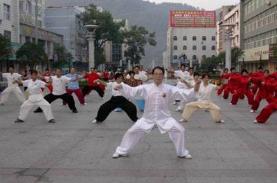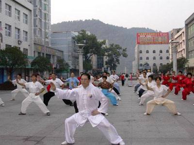 | 为纪念邓小平同志诞辰100周年,8月29日晨,建德市孙式健身队姜斗珍、吴式健身队王桂芬、陈式健身队狄玉芳、虹桥健身队赵玉龙、桥南健身队邓林林及梅城健身队阎保华等老师各自率领其部分学员自发聚集于文化广场进行太极拳晨练活动,在陈正雷大师的弟子、陈氏太极拳名师方艇老师的带领下共演了陈氏太极拳精要18式,以缅怀“太极拳好”题词的世纪伟人小平同志。 他们当中有多位二届浙江国际武术节金牌得主,有已七十多岁的高岭前辈,他们平时就坚持在各自的辅导站或健身队伍中长期进行健身锻炼,所以演练起太极拳来个个精神饱满,展示了他们健康的体魄。为全民健身作了示范宣传,使更多的人参与到全民健身运动中来。演练人员中还有市烟草公司党委书记唐利光、市旅游局副局长沈光炎以及市太极拳协会叶新力等四位副会长也亲临参加了演练活动。