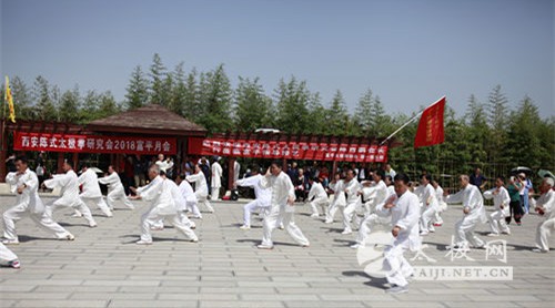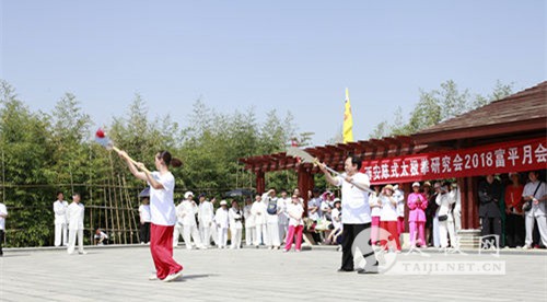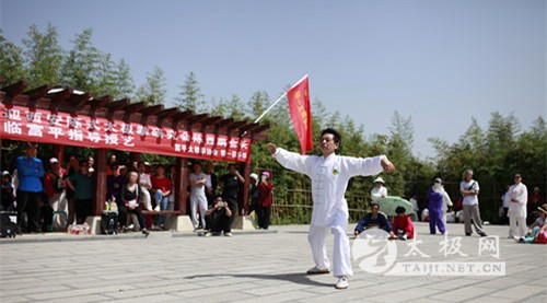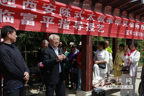 (太极网报道)5月13日上午九时,西安陈式太极拳研究会五月月会在富平县城的温泉河畔竹林广场举行。国际太极拳大师陈全忠及其入室弟子肖云兴、许宸杰、范云鹏、杨新平、王长春等出席本次活动。 陈全忠讲话 富平分会会长李忠吉以及王福运、张存良、崔宝珍、万国华为本月会的顺利举行做了大量的准备工作。富平分会精一俱乐部负责人王福运先生致欢迎词,他首先代表富平县太极拳协会、富平精一太极拳俱乐部以及庄里忠吉拳馆对陈全忠大师、陈西鹏会长以及西安陈式太极拳研究会研究会一行上百人的到来表示衷心的感谢和热烈的欢迎。同时他表示,在西安陈式太极拳研究会大力支持和帮助下,富平县太极拳事业一步步健康的成长并发展壮大。如今,富平陈式太极拳以崭新的面貌赢得了较高的赞誉。一直以来富平太极人秉顶着以武会友,以德育人的思想为理念,以振兴中华武术,传承太极精髓为宗旨,锐意进取,追求完美,广交朋友,共谋发展,为陈氏太极拳在富平的发展壮大做出了积极贡献。他还向今天到场各位太极拳同仁的一路扶持和鼎力相助表示感谢,并表示今后将会坚持原则,不负使命,为太极拳的发展和壮大不懈努力,搭建一个良好的平台迎接八方的朋友,为陈氏太极拳的持续发展与推广,开阔更加广泛的新天地。 现场嘉宾致辞 陈西鹏会长在讲话中指出,本次受西安陈氏太极拳研究会富平分会的盛情邀请,走就习近平总书记的家乡召开5月份的月会,意义重大。本次月会,不仅是研究会成员之间交流、切磋、提高的聚会,更是弘扬太极国粹,弘扬中华民族传统文化的盛会,同时也是对富平分会的一次检阅和促进。他向富平分会会长李中吉,以及王福运,张存良,崔宝珍,万国华等各位拳友的精心安排和热情接待表示感谢。 活动现场进行了精彩的表演,首先上场表演的是富平一队崔宝珍领衔的太极功夫扇。第二个是和平门辅导站表演的《基本功组合》,这些拳友学拳时间不足两年,但刻苦勤奋,在陈全忠大师的悉心指导下,进步很快。第三个上场的是铁路局辅导站《拳械组合》,太极拳配合太极剑,尤其是陈丽女士的太极剑展示,将传统武术,形体,舞蹈有机结合,真可谓是技惊四座冠压群芳。她60岁之前的舞蹈表演获奖无数,退休后的太极拳比赛也是奖牌奖金拿得手软。最高的褒奖无疑是获得2017年焦作市颁发的“最美太极人”。 第四个上场的建国门辅导站的副站长王长春拳师,他有深厚的外家拳功底,此次演练太极拳和太极剑是他参加2017年四川峨眉山国际武术锦标赛的获奖“产品”。尽管他已年过六旬头发泛白,脸型瘦削渲染岁月如刀,耸起的眉骨下深陷的鹰眼凛然透露出寒光。多年的习武经历让他处变不惊,淡然有道风仙骨的韵味,同道人昵称他为笑傲江湖的“长春子”。随后上场的是省体辅导站的春秋大刀和集体表演的36式普及架。张耀东和尹二梅夫妇俩的关公春秋大刀配合默契,夫唱妇随,赢得一片叫好声。由白旭胡艳红张改萍领衔的30人的表演队伍在烈日下精神抖擞展现出了总站人员能打硬仗的顽强作风。 第六个节目是富平二队(精一俱乐部)的《太极十八式》,第七个上场的是大雁塔辅导站许宸杰副会长带领的三名得力干将演练,许老师原名叫“许杰”,身体偏弱,自八十年代跟大师学习陈氏太极拳后,身强力壮了,对陈式太极拳的认识也到了痴迷的程度,直接把名字改为“许宸杰”,尽管音同字不同,钟情之及可见一斑。中间一袭红色战袍的是有“曲江红侠”之称的李馥利,尽管习练时间不长,但是本人走心刻苦,许老师也刻意指导栽培,今天的动作展示已有七成许老师的模样了。前面领衔的是陈丽秀的49式太极剑。 第八个是明德门辅导站表演的《刀剑拳组合》,首先是独自上场的王芳演练49式太极剑,中规中矩又静若处子动如脱兔;而后是陈啸川和田优优的太极拳,手眼身法步都比较到位;最后是罗志平的太极刀,蹿跃蹦跳刚柔相济,渐进至刀手合一的境界。四人既是独立个体,又能表现出一个整体,直叫观者赏心悦目。他们的师父是大师的入室弟子范云鹏副会长。 第九个是陕压俱乐部辅导站的功夫扇和富平监狱辅导站的《太极精要十八式》,领衔负责是张存良。他今年上半年最大的收获,受庄里小学王校长、觅子小学教导处张主任的邀请,分别指派张文艺、马煜昱、吕淑英三位教练去这两个小学传授推广陈式太极拳,受教教师和学生合计一千五百余人。很好的配合了武术进校园活动。第十个上场的是解放军通讯学院辅导站的肖云兴站长,他也是研究会副会长,此次独自表演了老架一路和二路炮锤的精华。最后压轴上场的是富平庄里忠吉拳馆辅导站,30人36式普及架,由李忠吉夫人孙帅群领衔,在整齐的口号声中雄赳赳气昂昂迈步进场,年龄最小的是11岁的李雁鸣,耍的太极单刀13式。研究会富平分会自去年4月成立以来,作为当地首家正宗的陈式太极拳馆,势头发展强劲,无论是场馆建设,师资力量培训都取得了可喜的成果。 节目交流至此全部结束了。研究会老会长94岁高龄的陈全忠大师底气充沛声音洪亮的开讲了:富平是伟人故里又是习主席的家乡,环境这么漂亮,不愧是是天下第一县。在这地方练拳多好啊。咱们习练太极拳就是为社会做贡献,为人们送健康,就好比一个“健康公司”,我就是董事长(笑声),太极拳在富平的传播推广,离不开众多拳友的辛苦付