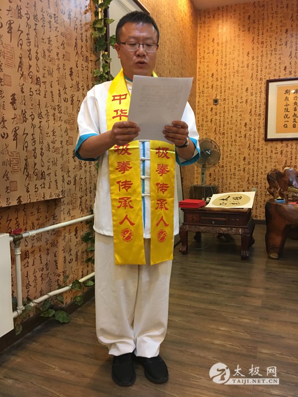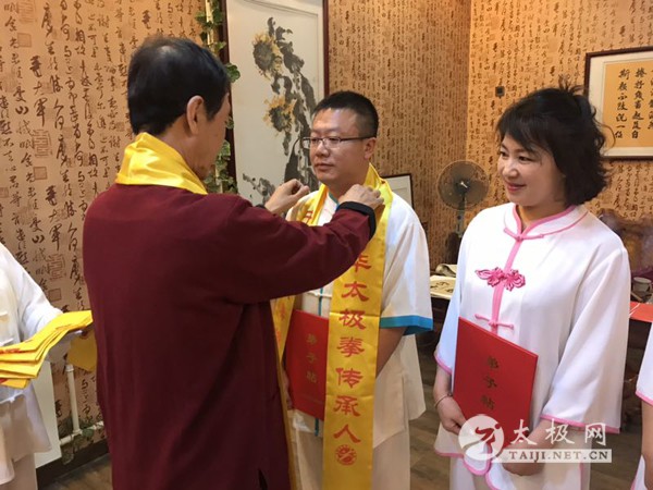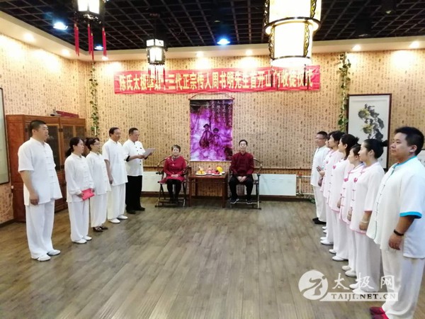 (太极网报道)正宗正源继绝学,立拳立德传薪火。2018年5月24日,农历四月初十,在享有“冰城夏都”美誉的哈尔滨,在汇茗缘茶文化学校的礼堂中,场景布置庄重而不失喜庆,简约而不失奢华,陈式太极拳第十三代正宗传人、陈有芹老师的入室弟子周书明老师在这里首开山门收徒,并举行了隆重而规范的收徒仪式。 自陈公王庭创立太极拳以来,太极拳的血脉、精髓一直在陈氏家族的世代相传中延绵不息,薪火相传。到十四世祖长兴公打破门规,收外姓徒弟,太极拳得以正式地蓬勃发展,发扬光大。正是因为太极拳经历了无数前辈和后代的前仆后继,始终保持着世代相传的师承关系,才使得太极拳的血脉、精髓、魅力传承了下来。 周书明老师此次首开山门收徒,有七位品德兼优的弟子(王嘉祥、张兴华、万红、刘红、田庆丽、王雨、杨志)入室,另外有五位记名弟子(郭玉志、秦国庆、高雪莲、李学波、赵庆)入门。他们是行业精英,有厅局级领导,有处科级干部,有外企主管;他们所处年龄段不同,有60后,有70后,还有80后,但是他们却有一个共同的特点,那就是他们因太极拳而结缘,练太极拳而相知,好太极拳而成痴。 本次收徒仪式首先由周书明老师和崔志芳女士向太极先师行祭拜礼,由周书明老师为新入门弟子系入门扣;然后由七位入室弟子和五位记名弟子逐一向周书明师父和师母递贴敬茶,行拜师礼仪。周书明老师将陈有芹大师亲手书写的12幅太极书法帖作为珍贵的礼物赠送给了新入门的弟子们。最后,由新入门弟子代表作了表态发言,表示一定严守门规,恪守门禁,谨遵训导,默持以敬,静心正身,勤学苦练,为太极拳的传承和发扬光大尽心竭力,贡献力量。 仪式的最后,周书明老师向新入门的弟子发表讲话,希望弟子们始终秉持哈尔滨市政协太极拳理论研究会(陈有芹国际太极拳友俱乐部总会黑龙江分会)的宗旨,即“传华夏智慧,承太极文化,融全民运动,合政协力量”,提出了师徒携手传承和弘扬太极文化的美好愿景。 |
