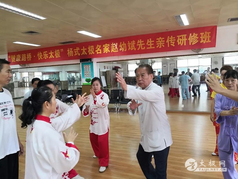 (太极网报道)6月2日至6日,杨氏太极名家赵幼斌受台州市武协八卦掌分会邀请走进路桥传授杨氏太极拳精要。参加这次培训学习的人都是能较好掌握杨式太极拳的骨干成员,他(她)们在5天的时间里跟随赵先生进修杨式太极85式,掌握太极功法和心法,听取太极技术理论和太极养生讲座。 赵幼斌授课 赵幼斌老师是杨氏太极大师赵斌(太极拳名宿杨澄甫外孙)之子,杨氏太极拳第五代嫡传。7岁开始随父习拳,又得其姑父傅钟文,老舅杨振基、杨振铎指点。现居住西安,常年奔波海内外,传播正宗国粹。 活动现场 来自福建泉州武术协会的陈宝真老师、广东中山市太极拳协会的林会长等慕名而来,不远千里到路桥一起体验正宗太极的魅力,一些路桥学员推掉业务,安排好工作,从上海等地赶回来参加学习,他们的精神为培训班增添了精彩一笔。 八卦掌协会会长王志清说,举办"健康路桥,快乐太极"赵幼斌先生亲传研修班,是要让更多的人明拳理、辨真伪、知方法、悟精华、懂太极。也是要让更多人习练到杨氏太极正宗后,在路桥普及推广、发扬光大。让"健康路桥"工作做得更好,路桥区创建"全国武术之乡"工作后继有为,人民生活更加健康幸福。 本站编辑:太极网陈超 |