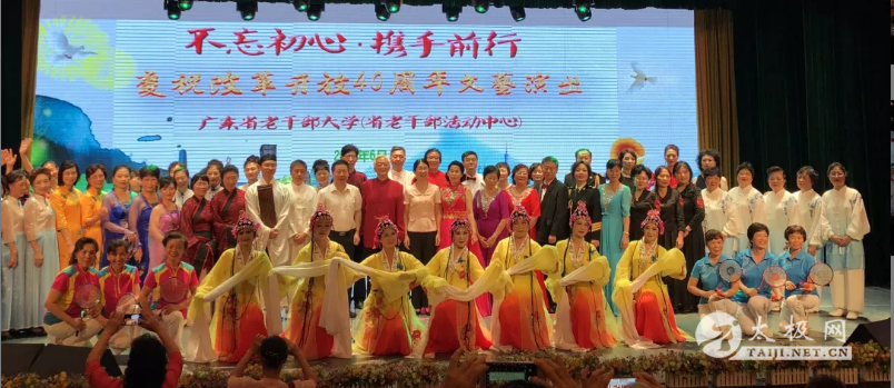 2018年6月8日,广东省老干部大学(省老干部活动中心)举行庆祝改革开放40周年文艺汇演活动——不忘初心,携手前行。省老干部大学太极班的学员们组织、演练了一场精彩的太极之花表演。 伴随着悠扬的我爱你中国的乐曲,身穿纯白太极服和蓝色刺绣批纱的学员们缓缓登场,演练起太极拳。宋斌老师弟子刘海建站在前排,太极刀法,如猛虎下山,威风堂堂。 弟子宋丹丹持剑上场,飘逸潇洒,轻灵沉着。 两位教练携手带来一段太极推手对练的表演,你来我往,你攻我防,招招式式,尽显内涵。精彩的表演赢得了现场热烈的掌声。 歌舞、乐器、诗朗诵等节目,异彩纷呈,精彩万分。 由广州海关分校带来的歌舞《我爱你,中国》,结合了民族唱法以及京剧的元素,令人眼前一亮,更是充分展示了大家对伟大祖国母亲的热爱。 英语班的学员带来了英文诗歌朗诵,学员们用另一种语言表达自己的心情。这些学员大多都是退休后开始接触英语,但也学的像模像样,这种精神非常值得我们学习。 几组乐器合奏,或轻快,或悠扬,充分展现了传统乐器的魅力。 太极剑、太极柔力球的展示,也充分展现出了老年人生活的丰富,以及对健康的追求。 最令人难忘的莫过于模特展示,一组学员身着青花瓷刺绣旗袍,随着音乐缓缓走上舞台,带领观众一同走进江南烟雨,带来美的享受。一组学员身着各式、各色华服,随着音乐的节奏律动,高挑的个头,玲珑有致的身材,仿佛回到二八年华。 最后的诗歌朗诵,带领大家回顾改革开放四十周年以来的重要时刻,让我们充分感受到了国家的强大、人民的幸福。 省老干部大学的学员们,大多都是曾经奋斗在国家各个岗位上的人才、精英,辛勤半生、兢兢业业。离开工作岗位后,选择自己的兴趣爱好,继续坚持学习,不断提升自己,也极大的充实了离退休后的老年生活。从唱歌跳舞、到器乐演奏、到各种技能的学习和掌握,真正实践着“活到老,学到老”。也激励和鼓舞着后辈们不断学习,不断进步。 责任编辑:太极网李宁 |