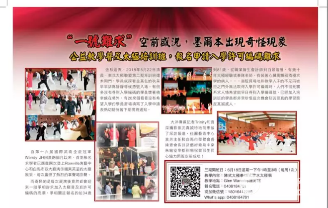 最近,东武太极研修院的美女弟子蒋慧,带领其成立的澳大利亚东武太极联盟在当地积极传播太极文化,成绩斐然,频传捷报。 本月的13日,蒋慧带领学员首次亮相澳洲白马市华联会舞台。 曲终扇收,太极学员们刚要走下舞台,白马市华联会盛会长走上台来请Wendy老师留步,他惊喜地询问:“Wendy老师,这些学员真的只有跟您学了一个多月的时间吗?”当Wendy老师确定地回答,不仅时间短而且这些学员都是太极零基础的太极新兵时,台下立刻爆出热烈的掌声。这是澳洲海外华侨同胞对传承中华太极文化行为的由衷赞赏和欣喜认同。 传承中华太极义不容辞,5月20日蒋慧又带领队伍登上更大的舞台,应邀参加在墨尔本rowville演艺中心的大舞台展示太极风采。精彩的太极表演受到全场热捧,其间两度登台展示。活动过后更是引发学习太极拳热浪,大家争先恐后报名蒋慧主持的太极培训班,以至于培训班名额一号难求。 东武太极联盟的学员众多从青年到老年,有职业医生也有白领上班族,还有一些有各种慢性病,甚至还装着心脏起搏器来参加学习,澳洲人们的求学欲望真的很感人。 当地媒体也关注到了这股“太极热潮”澳大利亚《大华时代》报整版报道大家学习太极拳的情况,澳大利亚《广告天下》报也用半个版面转载了,当地影响可见一斑。 澳大利亚东武太极联盟系中国东武太极研修院的直属分支,(下属机构遍布法国意大利加拿大香港等世界各地)由中国国家级中国武术七段当代陈式太极拳太极名家张东武先生任名誉主席,由(自幼少林寺皈依弟子,中国武术七段,东武太极研修院副院长徐勤兰女士)任首席艺术总监。 澳大利亚东武太极联盟主席Wendy蒋慧女士2018年香港第十六届国际武术大赛(拳,剑,扇,对练,古装英雄赛)五项第一名金牌全能武术冠军。蒋慧说:“因为我亲身感受到太极是慢性病人的福音,也是亚健康群体对放松身心,紧实肌肉,疏通经脉,活络骨骼,预防疾病和按摩内脏以及人体的灵活性和平衡性都有着立竿见影的神奇效应。 原来在事业上很拼而弄坏了身体,膝盖受伤不能下楼梯的,而且还有心脏病和甲状腺,通过学习太极拳锻炼恢复了健康,还做了世界冠军。 想到从前来澳开创事业,由于忽视练功健身导致浑身疾病丛生,当病魔几度降临药物反应严重引起心脏休克时,我才意识到,原来人生竟然会如此的微弱渺小如蝼蚁根本不堪一击。 完全意外的机遇使我得遇恩师,在重新追求迷恋太极的过程中我开始心神安宁,气血渐佳,当我学着气沉丹田,以气运身在追求太极拳行功走架时的松,静,空,灵境界同时,在太极柔缓肢体促动肠胃蠕动,疏通四肢百骸周身筋骨开始松韧给我带来惊喜时,我突然欣喜的发现以前的压力山大不翼而飞。在我逐渐减少药量乃至完全停药检验单却显示所有的病情在日趋好转时,我欣喜若狂恍若重生,所以我愿公益教学将亲身感受传授给热爱太极注重形体养生健身的海外侨胞,让更多人关注健康珍爱生命。 责任编辑:太极网李宁 |