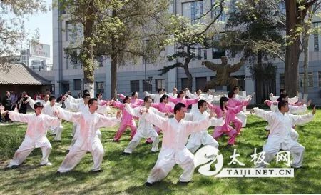 三、太极拳,越练越健康,越练越快乐! 有文献报导:美国一位学者做了一项研究,同年龄、同性别、同体征、同生理指标,分两组作两种方式进行锻炼,一种用健身器械,另一种是打太极拳,三个月后,检测身体的生理指标,太极拳组优于健身器械组。 据说筹办北京奥运会、研究开幕式的问题,请来了亚特兰大、悉尼、雅典等城市的奥运会开幕式的总导演,为北京的开幕式出谋划策,各国导演一致认为:开幕式要反应本民族的文化特色,中国的太极拳阴阳相合、虚实相间,能让人们产生和平心理,最能代表中国文化,所以在北京奥运会开幕式上我们看到的太极拳表演的确令人叹为观止。 练太极拳的人都称为拳友,共同的语言,共同的爱好,共同的情感,聚集在一起,谈笑风生,交流心得、沟通思想、互诉心愿,天南地北,海阔天空无所不谈,既可消愁解闷,又可获得讯息,真是善莫大焉,不亦乐乎。