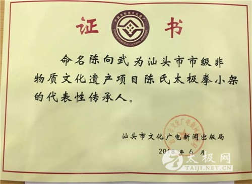 (太极网报道)6月14日上午,汕头市第五批非物质文化遗产代表性传承人颁证仪式在汕头市文化馆四楼会议厅举行。汕头市文化局、文化馆等相关领导参加本次活动。 据了解,汕头市第五批市级非物质文化遗产代表性传承人共58名。涵盖汕头地区文艺、民俗、戏剧、医学、体育等十多个领域。陈氏太极拳12代传人,国家武术七段陈向武被评为市级非物质文化遗产(陈氏太极拳小架)项目,市级非遗代表性传承人。 汕头市文化局副局长陈练生为陈向武颁证 陈向武,字润英,1970年出生于太极拳发源地河南温县陈家沟。系太极拳世家,为陈家沟陈氏二十世。太极拳第十二代嫡宗传人。其十四祖陈有本创编太极拳小架,十五世祖陈仲甡、陈季甡同乳而生,拳术功夫纯厚,御敌有功,清咸丰九年双双被御赐为“武节将军”,高祖陈鑫文武兼修,历时十余载完成《太极拳图说》这部武学精典,被称为中国太极拳理论的基石和集大成者。 向武自幼秉承家传绝学太极拳法,饱受太极拳大家经典拳理拳法之熏陶。尽得家传绝学之真谛,9岁即获河南省青少年武术比赛冠军。精熟家传各种套路,刀、枪、剑、棍及推手,无一不精。1990年至今,先后在国际、国内比赛中夺得金牌20余枚,银牌30多枚。1992年即在陈家沟武术馆任教,先后应邀在辽宁、江苏、南京、广东等地授拳。 陈向武 1993年应邀在广东汕头创办尚武太极拳培训基地、尚武太极拳馆,至今所授学员4万余人。其学生遍布德、美、法、加拿大、澳大利亚、俄罗斯、南非、新西兰等十多个国家。尚武太极拳馆成主至今所授学员4万余人。其学生遍布德、美、法、加拿大、澳大利亚、俄罗斯、南非、新西兰等十多个国家。己在全国各地开设尚武太极拳馆分馆20家,设立尚武太极拳俱乐部9个,学员在国际国内各大赛事中夺得各项金牌800余枚、银牌500余枚。:其中有230余名学员考取了国家武术六段,考取国家二级武术裁员23人。培训太极拳教练员200余名。陈向武先生在武术界影响力巨大,享誉甚隆,被国内外报社、杂志、潮汕武术网、太极拳传承网等多家媒体报道50余次。 陈向武 现为:汕头市市级非物质文化遗产(太极拳)项目代表性传承人、汕头市非物质文化遗产专家委员会委员。国家一级武术裁判、国家武术七段、中国武术段位制考评员,指导员,国家一级拳师、国际太极拳文化传播大使、温县太极拳研究院副院长、陈鑫太极拳法研究院院长、汕头市武术协会副主席、汕头市尚武太极拳馆全国总部馆长兼总教练、尚武太极拳俱乐部全国总部主席、汕头市太极拳总教练。 本站编辑:太极网陈超 |