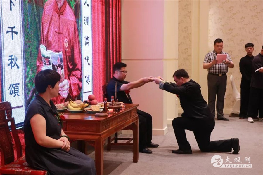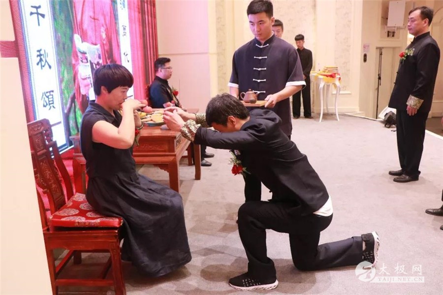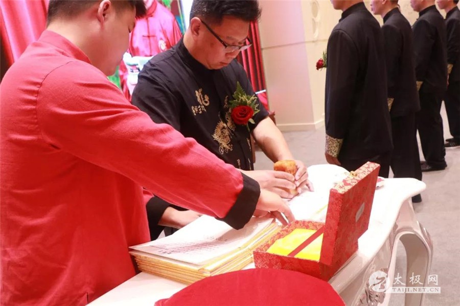 (太极网报道)2018年6月17日,庆州武院院长、太极名家陈有华老师的收徒仪式于在星太极(上海)养生文化馆隆重举行。 师父陈有华、师母李红香一同上香祭祖 上香祭祖之后,陈氏太极第十三代准弟子迈着整齐的步伐登堂入室,整齐的排列在师父师娘的面前准入门弟子们宣读拜师帖、目光坚定、所言掷地有声。准弟子向师父师母敬茶、递交拜师帖,行拜师礼。师父向准入门弟子训诫“进了我们尊古门。要时刻记住自己的责任,弘扬传统文化,积极传播太极拳,为我们尊古门争光。” 收徒仪式 师父陈有华与介绍人郭杰在拜师帖上签字盖章 陈有华训话 在悠扬大气的音乐、准弟子们严肃而坚定的动作衬托着这场仪式的庄严肃穆,师父陈有华亲手为每一位弟子带上绶带并发放传承证书作为开山大弟子,星太极(上海)养生文化馆馆长 郭杰带领众新弟子祭祖上香!“礼成”!随着主持人庄重的宣读,陈有华老师门下又添新丁,尊古一脉人丁愈加兴旺,如此喜事,应传为当世佳话。 陈有华夫妇与新入门弟子合影 大弟子郭杰率众弟子拜谢到场嘉宾 礼成之后,上海市将军活动中心主任 杨主任 致辞: “中国传统文化博大精深,陈有华师父不仅在积极传播太极拳,同时代也在弘扬中国传统文化。在飞速发展的现代社会,人心浮躁,最需要的就是像刚才这样的一场庄严肃穆的仪式。这样的仪式,不仅能让我们肃然起敬,也能让我们感受到老祖宗留下来的精华是值得我们传承和发扬的。” 陈有华老师向参加今天收徒仪式的嘉宾表示感谢,希望新入门的弟子们能够恪守门规祖训,认真习练太极拳,用心体悟太极文化。他还表示尊古门一脉人丁愈加兴旺,传承后继有人,我辈当以发扬太极拳文化为己任,为尊古太极的发展,尽自己所能! 本站编辑:太极网陈超 |