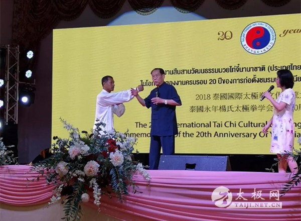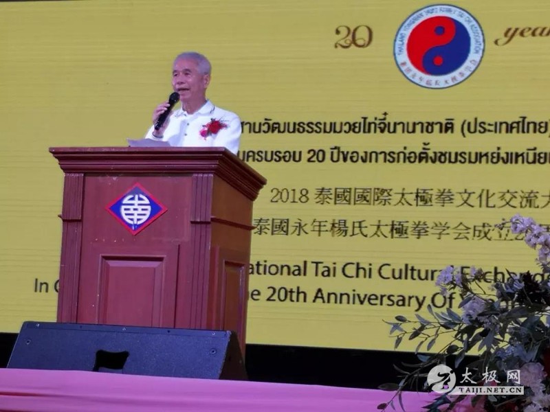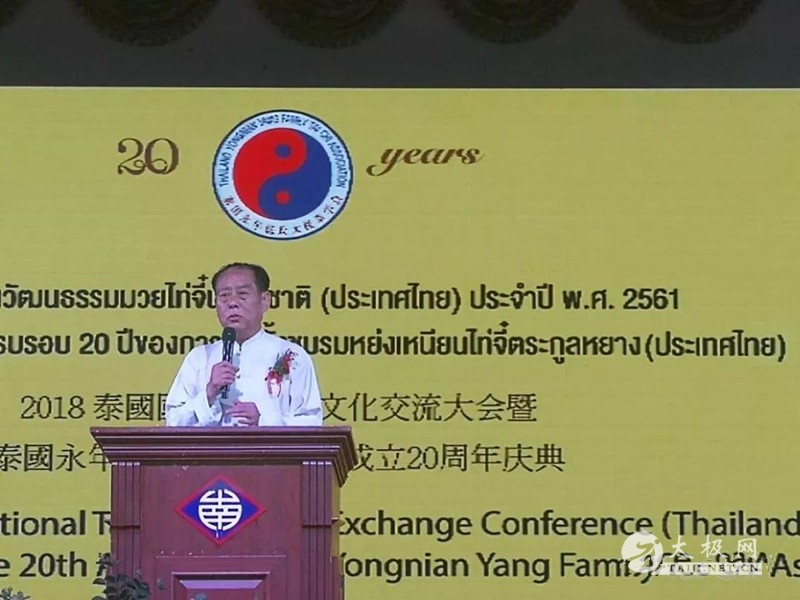 (太极网报道)2018年6月23日,2018年泰国国际太极拳文化交流大会暨泰国永年杨氏太极拳学会成立20周年庆典于泰国曼谷海南会馆圆满落幕。 陕西省决策咨询委员会委员、西安市武术协会荣誉主席陈振虎,原陕西省武术管理中心书记宋斌,中国武术协会委员和专业委员会委员、杨氏太极拳第五代嫡传人、西安市武术协会副主席、西安太极拳总会会长、西安永年杨氏太极拳学会会长、香港赵幼斌杨氏太极拳总会永远荣誉会长、美国国会众议院荣誉状获得者、泰国太极拳总会终身贡献奖获得者、河南大学客座教授、邯郸学院客座教授、中国武术八段赵幼斌,泰国永年杨氏太极拳学会会长李维钦,陕西省武术协会副秘书长、西安市洪拳总会会长、西安市武术协会副主席、全国武术之乡西安市莲湖区武术协会主席高建武,原泰国永年杨氏太极拳学会会长徐光亮、泰国永年杨氏太极拳学会副会长李安详,本次大会裁判长刘冠贤先生、执行委员及裁判等出席交流大会开幕式。 大会主席、泰国永年杨氏太极拳学会会长李维钦先生致欢迎词,泰国永年太极拳学会黄澍荣先生主持开幕式,活动吸引了来自中国、泰国、香港、澳大利亚等地的太极爱好者参加了比赛。 国际武联执委、中国武术协会常委、中国国家武术散打队总领队田苏辉先生因公务未能出席大会,专程发来贺信表示祝贺。世界太极拳网总编余功保先生专门为活动题词祝贺。 赵幼斌老师宣读田苏辉主席贺信 本次交流大会是永年太极丝路行系列活动之一,也是“一带一路”文化交流与合作战略的具体实践,将有力推动太极拳运动在中泰两国的普及推广,通过“太极与文化”“太极与旅游”等深度融合,让两国人民更加了解太极拳这一中国悠久文化之美,共享太极拳运动对身体健康和精神气质的促进提升之益处,真正让太极拳成为凝聚中泰两国人民友谊的媒介,推动和巩固中泰两国人民的传统友谊。 交流大会现场 本次交流大会,根据李维钦会长的提议,在比赛形式上大胆创新,三十只参赛队伍,每队四人,共一百二十位运动员参加连打四遍八十五式杨氏太极拳比赛,真正体现了“一遍不忘,二遍熟,三遍四遍长功夫”的太极拳练习要求。裁判们从演练的完整、动作规范、人拳合一的精气神、集体的配合、演练时间等几个方面进行评判。全体参赛运动员全部按时完成连打四遍八十五式杨氏太极拳的演练要求,裁判员认真执裁,整个比赛过程顺畅圆满。 赵幼斌老师太极八法讲解和演示 交流大会比赛结束后,赵幼斌老师进行了太极八法的讲解,讲课深入浅出,并加以现场展示和演练。通过赵老师的讲解,大家对太极拳这一肢体运动动有了更进一步的了解,通过学习动作招式背后所隐含的文化基础,更深刻的感受到太极拳和太极文化的魅力。 陈振虎先生为一等奖获得者颁奖 宋斌先生为二等奖获得者颁奖 赵幼斌先生为三等奖获得者颁奖 下午17:00,交流大会颁奖仪式隆重举行。中泰嘉宾代表为获一、二、三等奖的代表队办法证书和奖金。晚上18:00,泰国永年杨氏太极拳学会成立20周年庆典晚宴在由泰国太极拳总会提供奖学金支持的小朋友组成乐团演奏的中国传统音乐曲中隆重拉开帷幕。 泰国太极拳总会会长连扬芬女士,与上午参加交流大会的嘉宾,原泰国太极拳总会会长徐展略先生,新加坡太极拳老师陈政嶬先生,泰国太极拳老师蔡家良先生,泰国太极拳老师陈良耀先生,原北榄坡太极拳协会会长丁章梅女士,及其他中国、泰国、澳大利亚等地七百多名宾客一起出席庆典晚宴。 泰国永年杨氏太极拳学会会长李维钦先生致词 泰国太极拳总会主席连扬芬女士致辞 本次交流大会主席赵幼斌先生致辞 晚宴庆典中,李维钦先生、连扬芬女士、陈振虎先生和赵幼斌先生先后发表了热情洋溢的致辞,泰国永年杨氏太极拳学会和其他各地的太极拳机构交换锦旗礼物,中国西安、泰国、澳大利亚和其他地区演员献上了精彩绝伦的歌唱、木偶、泰国民俗舞蹈、太极剑、太极刀、太极八法、合唱及37式太极拳的表演。 2018年泰国国际太极拳文化交流大会暨泰国永年杨氏太极拳学会成立20周年庆典由泰国永年杨氏太极拳学会主办,西安永年杨氏太极拳学会协办,泰国太极拳总会和西安太极拳总会予以支持,并得到澳大利亚、香港等地太极拳机构的大力支持。這次交流大会有一百二十位运动员参加比赛,大約有七百一十人參加晚宴。參加比赛的運動員來自中國西安和其他地區共四十三位,中国香港二十三位,广東中山十四位,澳大利亞悉尼和墨爾本共八位,其餘選手來自泰國八府,是近年来泰国参赛人数最多、参赛范围最广、内容最丰富的一次国际太极拳交流活动。 本站编辑:太极网陈超 |