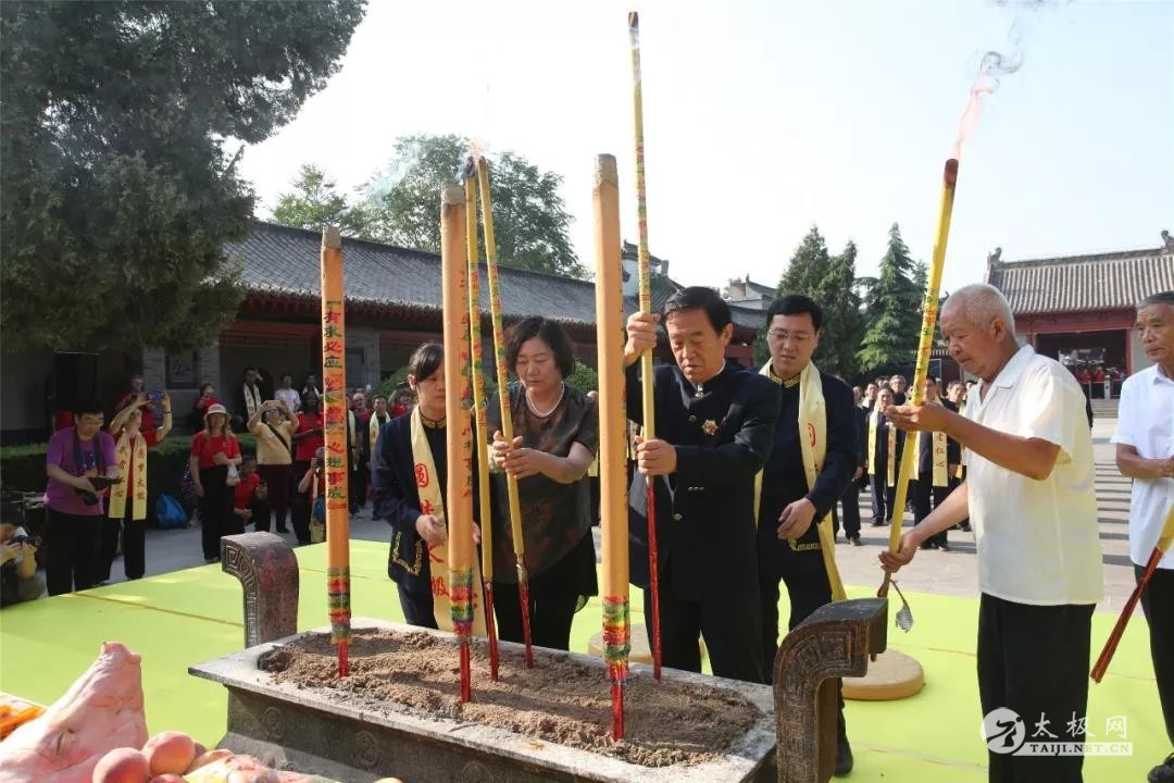 (太极网报道)戊戌仲夏,陈沟景明,祥光凝瑞,吉气环绕。6月28日晨,“第五届陈正雷太极年会”祭祖大典在陈家沟太极拳祖祠隆重举行。陈家沟陈氏第十九世·太极拳第十一代嫡宗传人陈正雷先生亲率参加年会的国内外弟子及陈正雷太极体系家人数百人齐聚祖祠,在先祖陈王庭像前焚香行礼,秉持心中之至诚,追缅先人之功德,恭敬致祭。 按照祭祖礼仪,在陈家沟家族理事会的主持下,陈正雷大师携夫人路丽丽女士及家人在陈王庭塑像前上香、敬酒,叩拜祖师爷! 在陈氏十九世·太极拳第十一代嫡宗传人陈正雷先生的带领下,全体祭拜人员向祖师爷行鞠躬礼! 陈氏太极拳第十二代嫡宗传人陈斌先生致辞,表达陈氏太极拳后世传人对先祖的敬仰之情。 自先祖王庭创拳,陈氏太极拳经陈长兴、陈鑫、陈兆丕、陈兆奎、陈发科等等历代先师发扬光大,陈氏后人及弟子、后辈代代踵事增华,太极拳传承至今已四百余载。如今,陈氏太极拳传遍世界各地,受到全球太极拳爱好者的青睐,习练者数以亿计。 参加祭祖典礼的后辈传人在太极拳祖师像前表示,我们一定会牢记先祖师训,感恩先祖福泽,心怀先贤教诲,在弘扬太极的光明大道上开拓前行,让陈氏太极拳福泽寰宇,造福人类! 本站编辑:太极网陈超 |