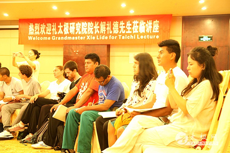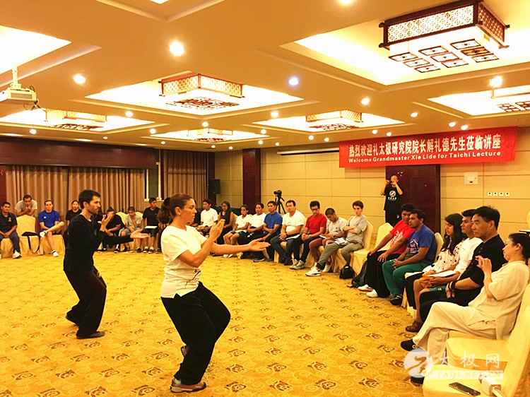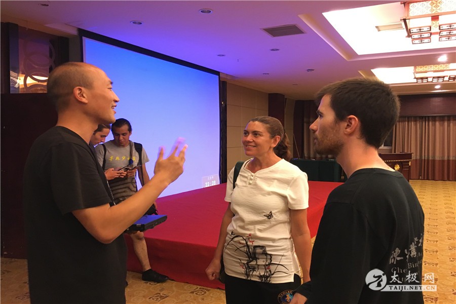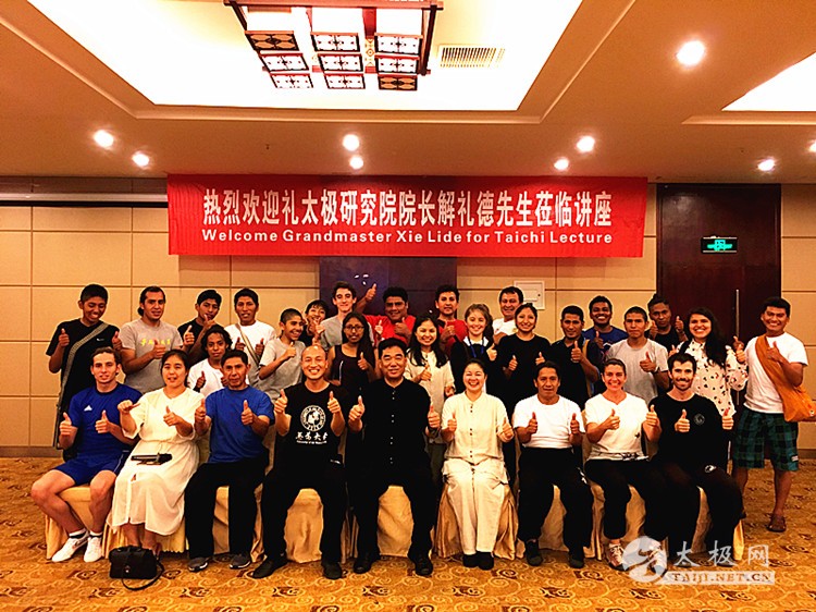 (太极网报道)2018年7月8日,由我国商务部主办、河南工业大学承办的玻利维亚少林武术与陈式太极拳研修班在领队李世锋老师的带领下走进太极拳发源地温县陈家沟,应邀从上海来到陈家沟授课的上海礼太极研究院院长解礼德老师当天与国际友人们进行了深入交流互动,并于当晚为研修班学员奉献了一场精彩的陈式太极拳主题讲座。 李世锋在接受采访中表示,此次研修班旨在加强对外交流,加深国际认知,拓宽国际间的合作渠道。据悉,这是五月玻国外长费尔南多先生访问陈家沟后,中玻文化交流的又一件大事。学员由来自玻利维亚的文化官员、立法律师、大学老师、武术教练、武术学生等各界精英组成。 解礼德老师为近30名玻利维亚友人展开“陈式太极拳的风格与特点”主题讲座,从太极拳特点、养生及技击方面为国际友人上了一堂简洁精辟、生动形象的太极认知课,尤其是从中国汉字“势”的角度讲解阐述太极拳让大家颇感收获,并与现场学员进行了现场功夫互动,受到了学员们的一致好评。 解礼德老师授课中 解礼德老师与李世锋老师互动演示 玻利维亚友人上台“交手”切磋 讲座中玻利维亚友人认真做笔记 长期在陈家沟学拳的国际友人也来到现场互动 李世锋(左)与国际友人沟通中 礼太极学员陈榕为大家献唱中国歌曲 讲座结束后大家向解老师致谢 解礼德和玻利维亚学员合影留念 来自玻利维亚的国际友人们对太极拳表现出了浓厚的兴趣,纷纷上场与解礼德老师“交手”切磋互动,纷纷表示折服于太极的魅力。在李世锋老师的组织下,研修班的学员们也现场为大家献上了精彩的武术表演,令人惊讶的是,学员登台表演了少林长拳、蔡李佛拳、陈式太极拳、杨式太极拳,有模有样颇具规矩,武术俨然成为国际友人了解和认识中国文化的生动载体。 讲座结束后,玻利维亚友人向解礼德及李世锋老师等人抱拳礼致谢,并向解礼德老师赠送小礼物,体现了良好的中国武术传统礼仪文化。据悉,研修班成员将会在陈家沟继续学习一段时间的太极拳功夫,以期更好地了解和认识中国传统文化的精髓。 本站编辑:太极网安安 |