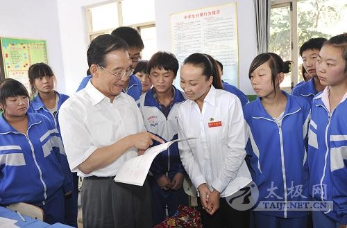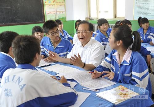为培养大批优秀的农村中小学教师,国务院决定从2007年起在教育部直属6所师范院校开展师范生免费教育试点,4年来累计招生4.5万人。目前,2007级1万多名免费师范生已进入为期半年的教育实习阶段。 温家宝一直十分关心免费师范生学习成长情况。当今年教师节来临之际,总理特意提出要和北师大的免费师范生们一起到河北偏远的山村学校看望师生,过一个有意义的教师节。 兴隆县距离北京135公里,是长城脚下的一个山区县。六道河中学是这个县的一所农村寄宿制初级中学,学生住家距离学校最远的约有30公里。 能够与总理同车一道去山村学校调研,北师大的免费师范生苏楠、熊国李等8位同学十分高兴。 在赶赴兴隆的路上,温家宝在车里与同学们亲切地聊起来。温家宝对同学们说,免费师范生是未来农村教师队伍的新生力量,是提高农村教育质量的关键所在。不懂得中国农村,就不懂得中国国情,希望他们将来投身农村教育,把家乡建设好。 总理和学生共学《珠穆朗玛》 经过两个小时的车程,温家宝来到了群山环抱的六道河中学。在操场上,温家宝和同学们一起打太极拳。接着他又和学生打篮球,连续几次成功的投篮,引来了阵阵掌声。 10时整,温家宝来到九年级2班,与50名同学一起上语文课外阅读课,学习散文诗《珠穆朗玛》。“珠穆朗玛,深海里站起来的女神,你屹立在世界高处,不是为了世界第一,只为缩短与太阳的距离。”青年作家宓月写的这篇散文诗,赞美了珠穆朗玛的神圣与壮美。 温家宝坐下来认真地听年轻的语文老师王海艳讲课,与同学们一起朗读,讨论,做笔记。课堂上时而静谧,时而欢笑,总理与老师、同学们融在了一起。 45分钟的阅读课结束了。老师和同学们围在总理身边。温家宝对他们说,这是一篇富有哲理的散文。它不仅指出了人的信念、追求和意志,还反映了人与自然的关系、民族团结,老师讲得好,同学们也学得好。王海艳回答道:总理的到来让大家很兴奋,这是我和同学们一生中难忘的一堂课。 “让农村孩子都能上学” 随后,温家宝在学校活动室里与部分教师和免费师范生代表座谈。兴隆县一小思想品德课老师张智慧说,思想品德来源于生活,回归于生活。要把德育列为教学的首位。 六道河中学数学教师马春宏认为,教育要发展,必须改革。老师要走下三尺讲台,让学生展示自己的见解,参与学生的活动。兴隆县一中校长孙保国说,要大力推进课堂教学方法的改革,改革教与学的传统方式。 在听取大家发言后,温家宝说,加强农村教育,关系到教育事业现代化,关系到农村的长远发展,关系到国民素质的提高。学校是乡村的中心,而教师则是学校和乡村的灵魂,乡村教育对启迪民智必不可少。在农村,教育既是基础工程,也是民生工程和民心工程。我们一定要通过坚持不懈地努力,让农村所有孩子都能够上学,都能接受现代文明的教育。 温家宝强调,办好农村教育,需要社会各方面的共同努力。特别要重视和改善农村办学条件,提高农村教师待遇,让广大农村教师留得住、干得好、受尊重。我们还要继续做好免费师范生这项工作,保障师范生学习和实习经费,建立免费师范生进入、淘汰、奖励机制,支持免费师范生继续教育,保证免费师范生优先就业。 |