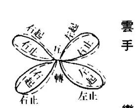 文事武功,对神意的要求都是第一位的。演练者的意就是不丢不顶的太极拳意。用神意统领周身,按规矩运转,就会出现“周身无处不太极”的状态。既然云手是太极拳的“母式”,那么云手的神意就是太极拳演练和实作的神意。 正常情况下,神意的关注有内外之别。在内为内劲的随机调节,在外为眼神的适时观照。 “遵易理,合拳法,统周身”才是云手神意的“真态”。 三、云手的轨迹