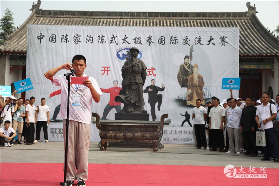 (太极网报道)太极圣地陈家沟,四百年太极星火传全球。聚是一团火,散是满天星! 8月2日,太极圣地掀起太极热潮,2018年第四届中国陈家沟陈式太极拳国际交流大赛于太极拳祖祠盛大开幕,来自全球各地的121支代表队数千名太极拳爱好者相聚太极拳发源地共襄盛会。 开幕式现场人山人海 大赛举办方陈家沟陈氏太极拳协会、陈家沟太极拳学校表示此次大赛旨在充分展示太极拳发源地中国陈家沟的风采, 本着“以武会友、共同进步”的宗旨,通过丰富多彩的活动,把大赛办成有特色、高水平的交流盛会,从而促进各地太极拳交流与合作,增进太极界的团结与友谊。 出席大赛开幕式的嘉宾有: 陈家沟太极拳学校校长、陈家沟陈氏太极拳协会会长、大赛组委会主席陈小星 陈家沟村委会主任陈景元 陈家沟家族理事会代表陈景安、陈一华、陈沛林 陈家沟太极拳学校总教练陈自强 大赛组委会仲裁主任陈小六、副总裁判长杨建平、总检录长陈涛 大赛裁判长陈恩、梁正雨、李小华、刘高朝、张宗军等 大赛突出贡献代表桂金华、曾加华、马力、郭留群、符开辉等。 大赛开幕式由陈家沟陈氏第二十世太极拳正宗传人、世界太极拳联谊会副秘书长张宗军携大赛组委会陈相林、陈大伟等联袂主持。 大赛组委会主席陈小星为开幕式致辞,陈小星大师代表组委会向全体嘉宾和运动员表示欢迎,他表示本次大赛规模大、活动丰富,希望参赛选手能在陈家沟留下美好印象,并预祝大赛圆满成功。 陈家沟村委会主任陈景元在讲话中代表陈家沟村向全体参赛选手表示欢迎,陈景元表示此次比赛的举办是陈家沟村的大事,也是太极拳发展史上的一件大事,希望大家走进太极拳发源地,学习太极拳,了解陈家沟。 运动员代表陈利兵宣誓 裁判员代表马弟致宣誓 陈家沟太极拳四百年年代代传承薪火不熄,尊师重道、重视根文化对武术传承尤为重要,开幕式上来自甘肃庆阳陈自强太极学堂的黄明兰为感恩师父陈自强老师的传拳之恩,特邀请著名书法大家马克新先生书写书法牌匾一块敬赠师父,以表感恩之情。 大赛组委会主席陈小星宣布大赛开幕 精彩的开幕式名家表演环节上,来自全球各地的太极拳名家在太极圣地陈家沟纷纷登台展演,上演了一场场精彩绝伦的太极拳表演,赢得了现场观众的阵阵掌声和欢呼。 太极网全媒体团队现场跟踪报道,并通过“大拳师直播间”为全球拳友现场直播大赛盛况,吸引了数以万计的拳友关注点赞。 |
